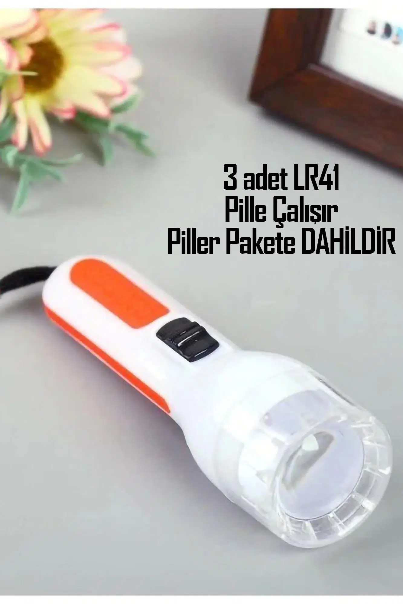 3 adet LR41 düğme pille çalışır piller pakete dahildir.