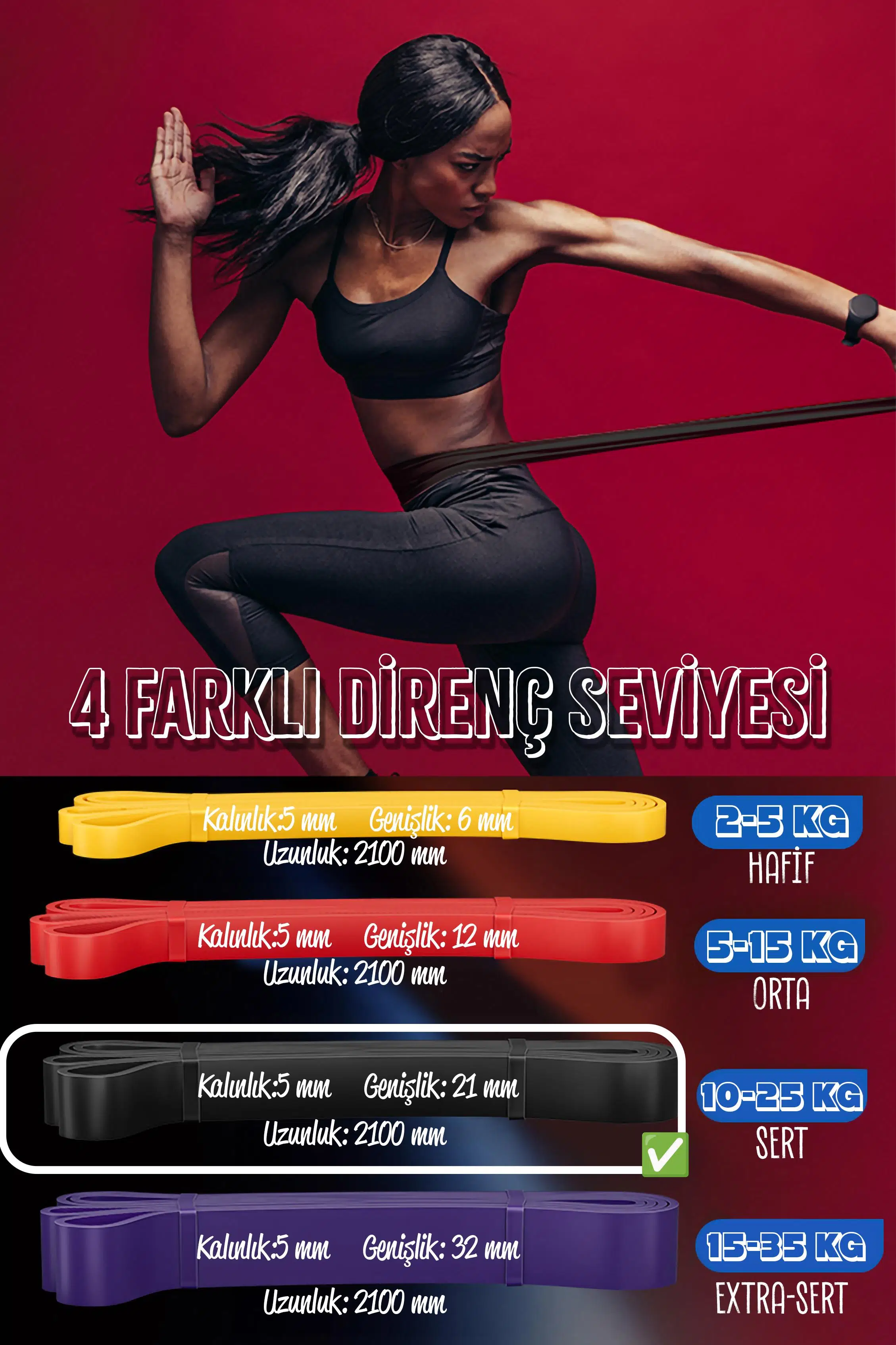 Eğer kas geliştirmeye yeni başlıyorsanız, hafif bir dirençle (örneğin 5 kg) başlayabilir, daha sonra kademeli olarak direnci artırabilirsiniz. Eğer zorlayıcı egzersizler yapmak istiyorsanız, daha yüksek dirençli bantları tercih edebilirsiniz.