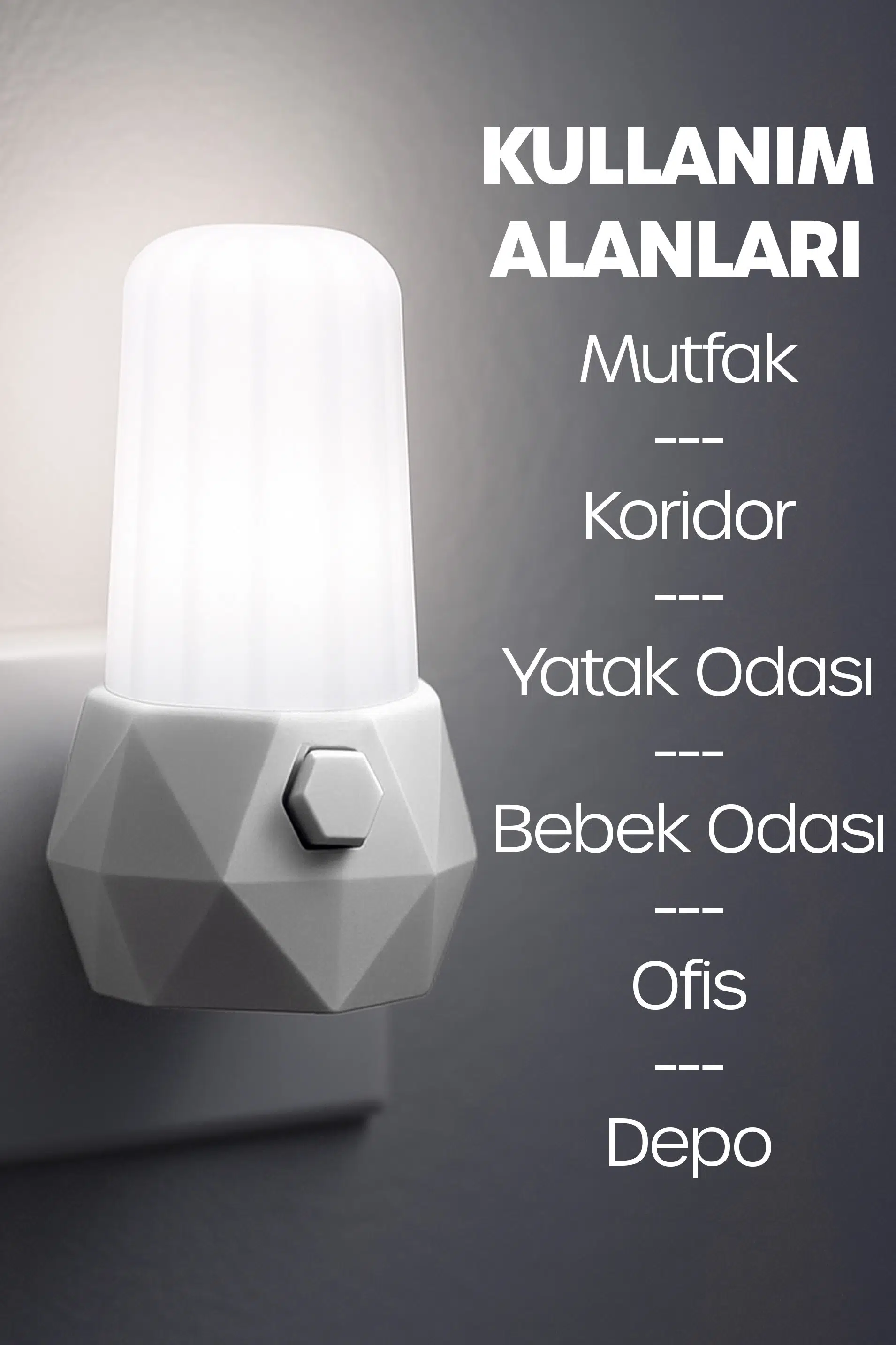 Evde geceleri güvenli ve konforlu bir ortam oluşturmak isteyen herkes için ideal bir gece lambasıdır. Modern priz tipi tasarımı sayesinde kabloya ihtiyaç duymaz, direkt olarak duvara takılarak anında kullanıma hazır hale gelir. Hem şık hem de işlevsel yapısıyla mutfak, koridor, yatak odası ve özellikle bebek odaları için mükemmel bir çözüm sunar.