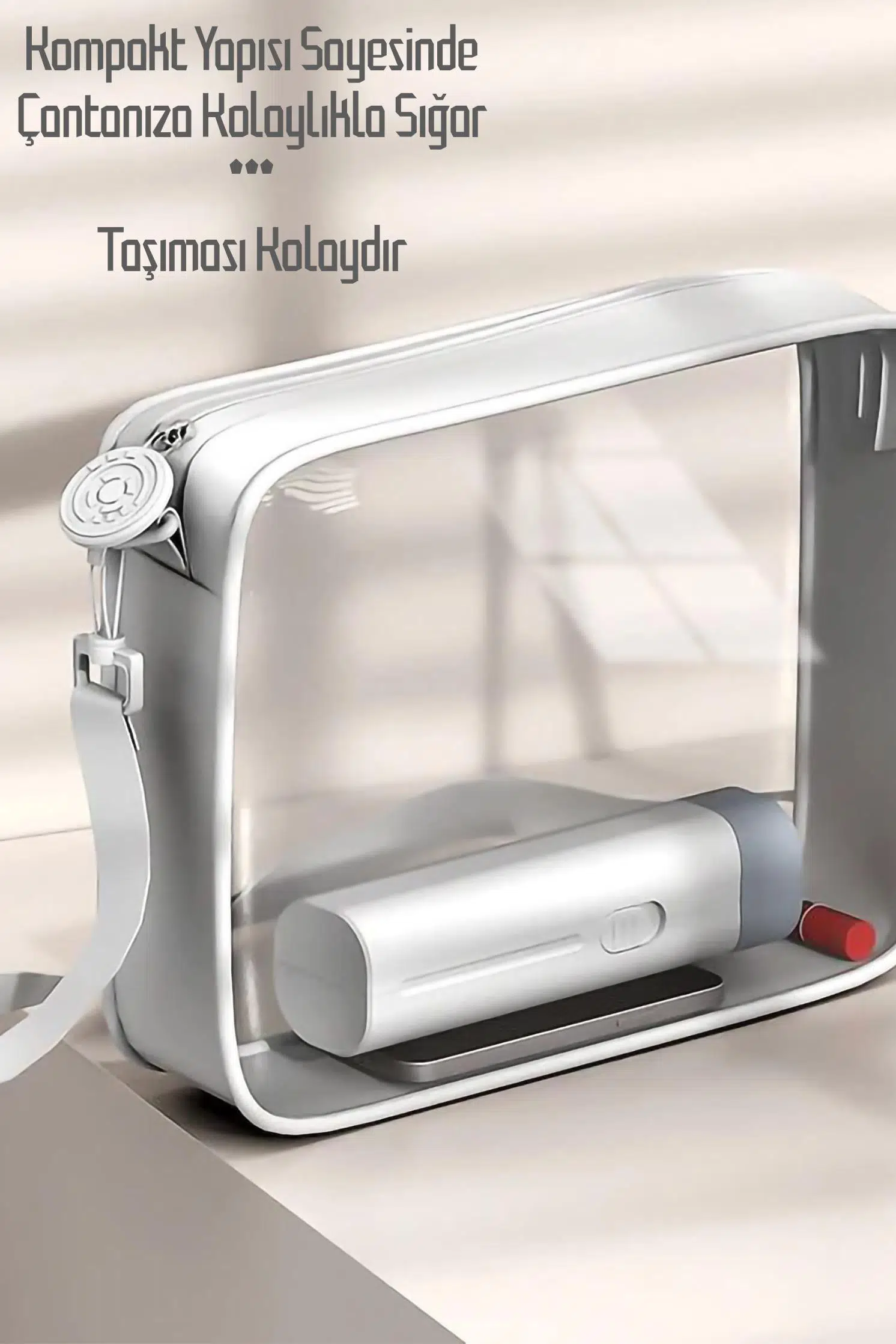 Taşınabilir ve şık: Minimal beyaz-gri gövde, çanta içine rahatça sığar; masada yer kaplamaz.