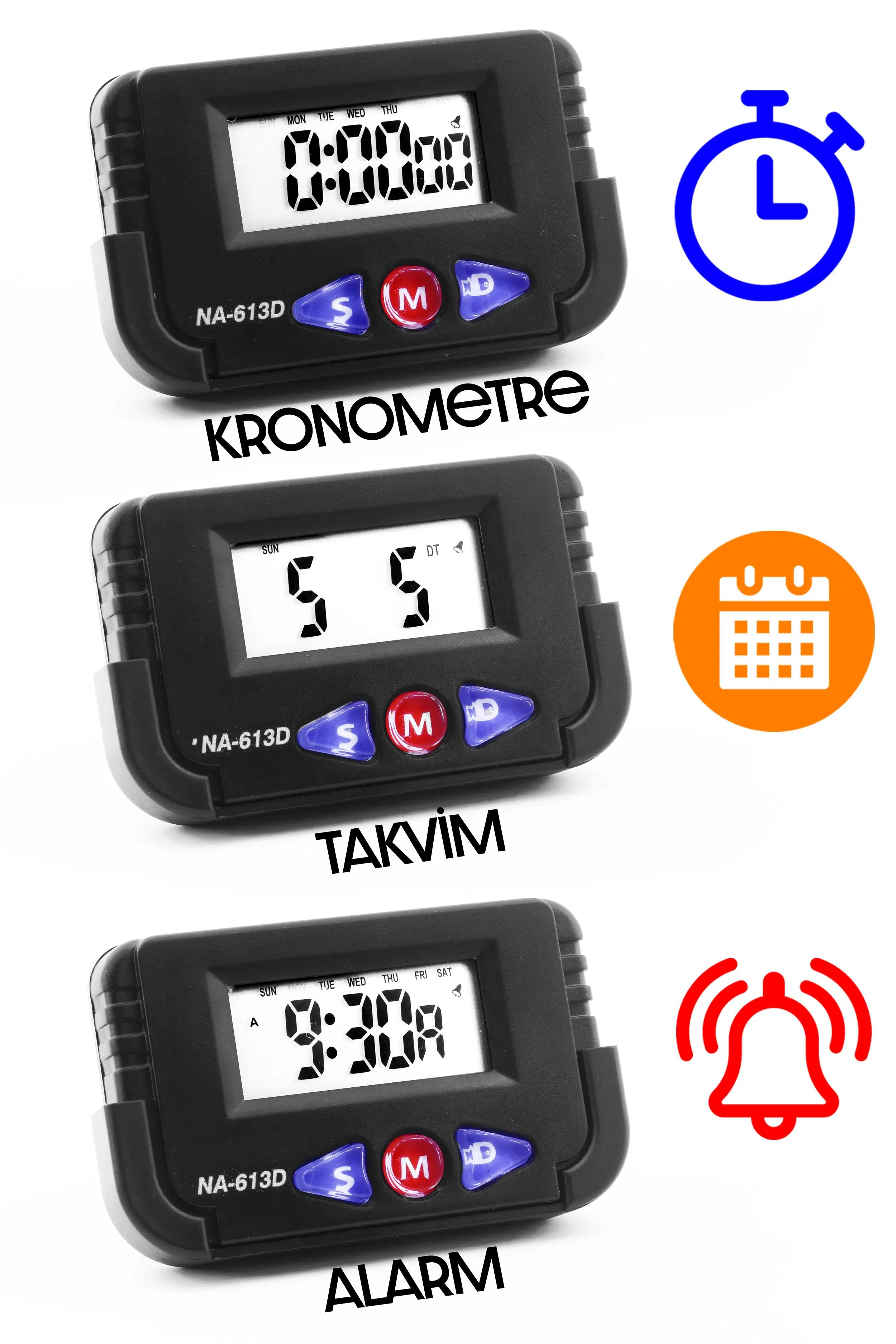 Modern ve şık tasarımıyla her ortama uyum sağlayan NA-613D Dijital Masa Saati, sadece zamanı göstermekle kalmıyor, aynı zamanda kronometre, takvim ve alarm fonksiyonlarıyla da hayatınızı kolaylaştırıyor.
