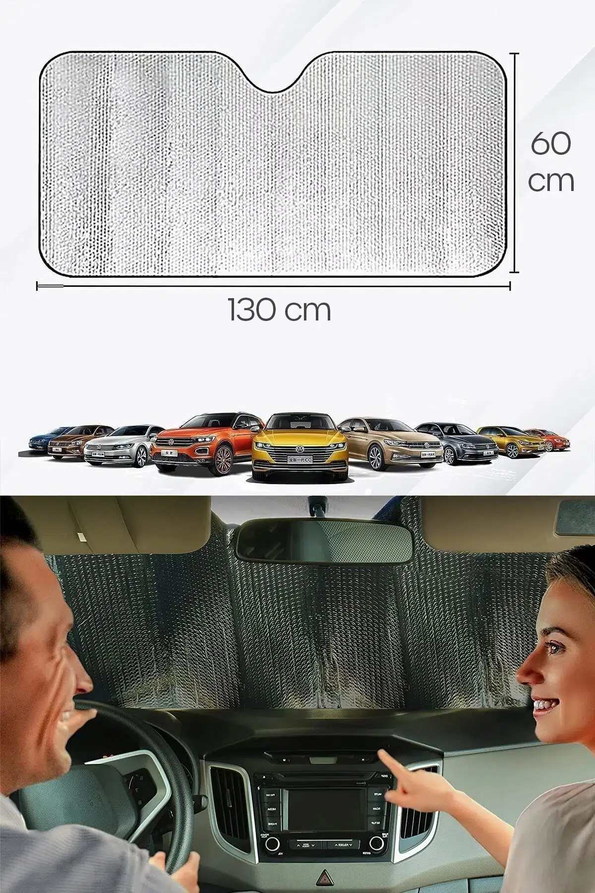 Oto Ön Cam Güneşliği 130x60 cm Metalize Araba Cam Güneşlik Isı ve UV Koruyucu