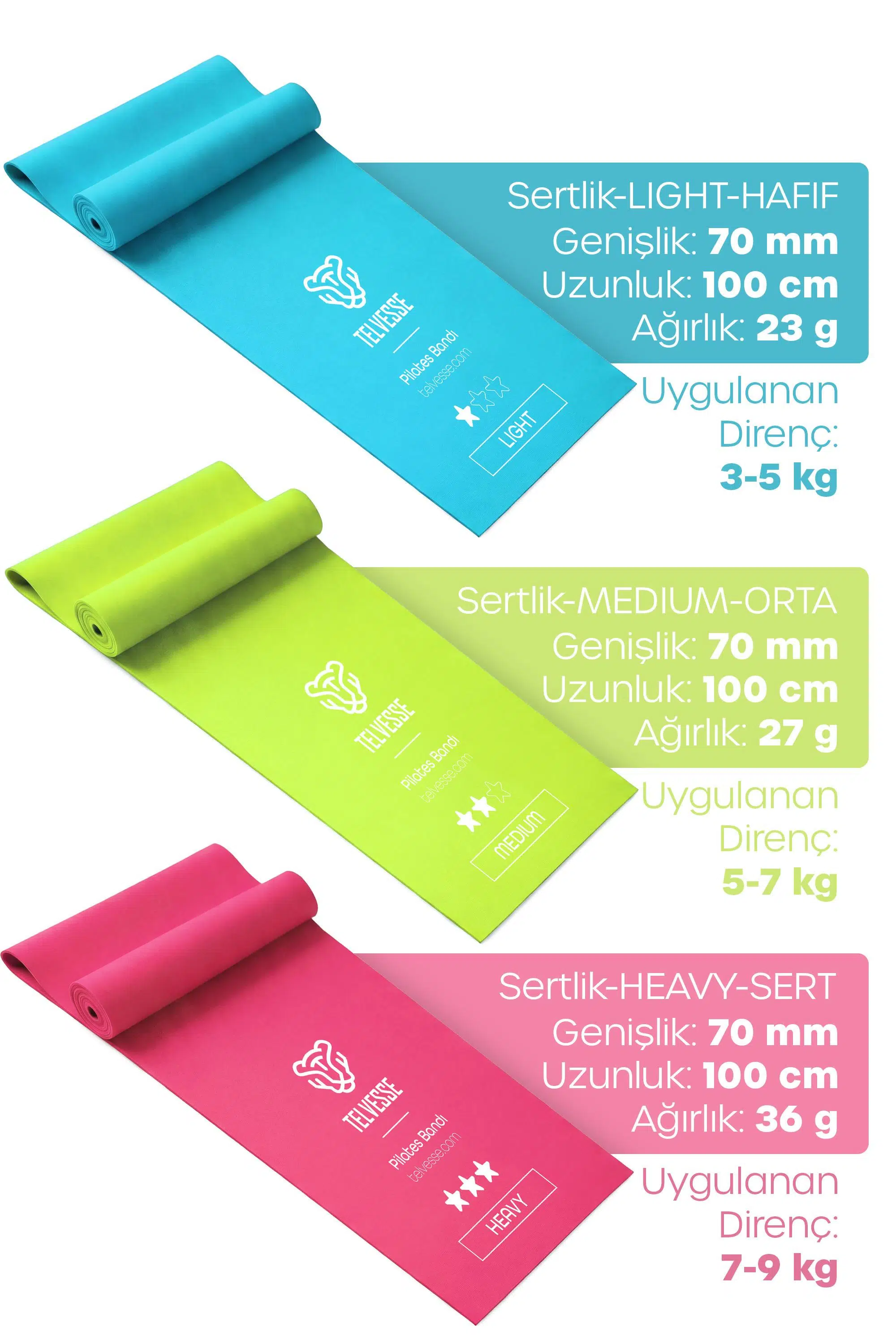 Isınma–rehabilitasyon benzeri hafif çalışmalar için Light, sıkılaşma ve kondisyon için Medium, güç ve yoğun antrenmanlar için Heavy idealdir.