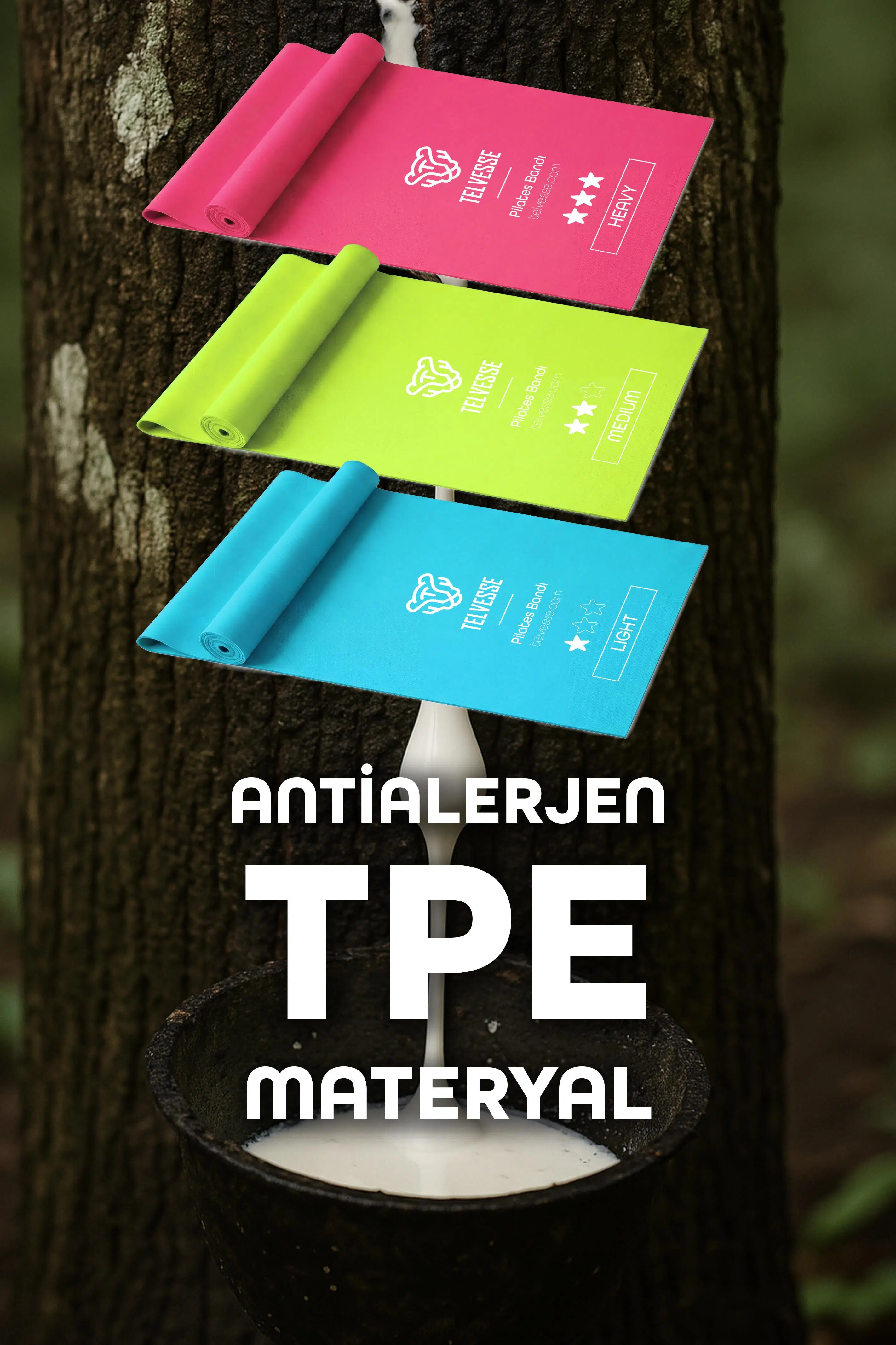 TPE bantlar genellikle yumuşak dokulu ve iyi esneme kabiliyetine sahiptir. Görsellerde “antialerjen” vurgusu var; yine de alerji/hassasiyet kişiden kişiye değişebilir. Çok hassas bir cildin varsa ilk kullanımda kısa süreli deneme yapmanı öneririm.