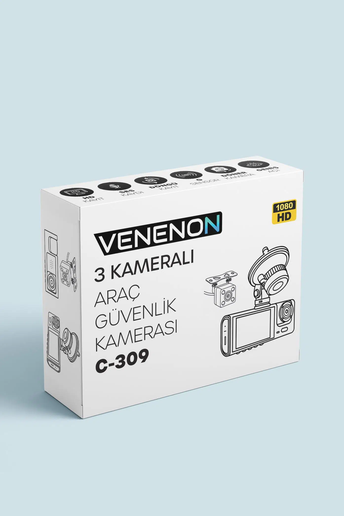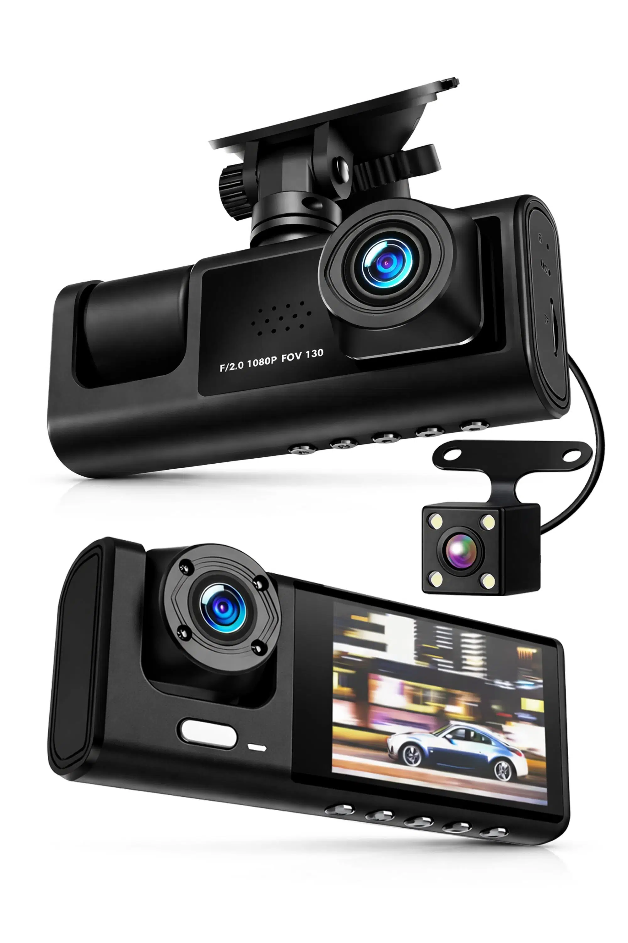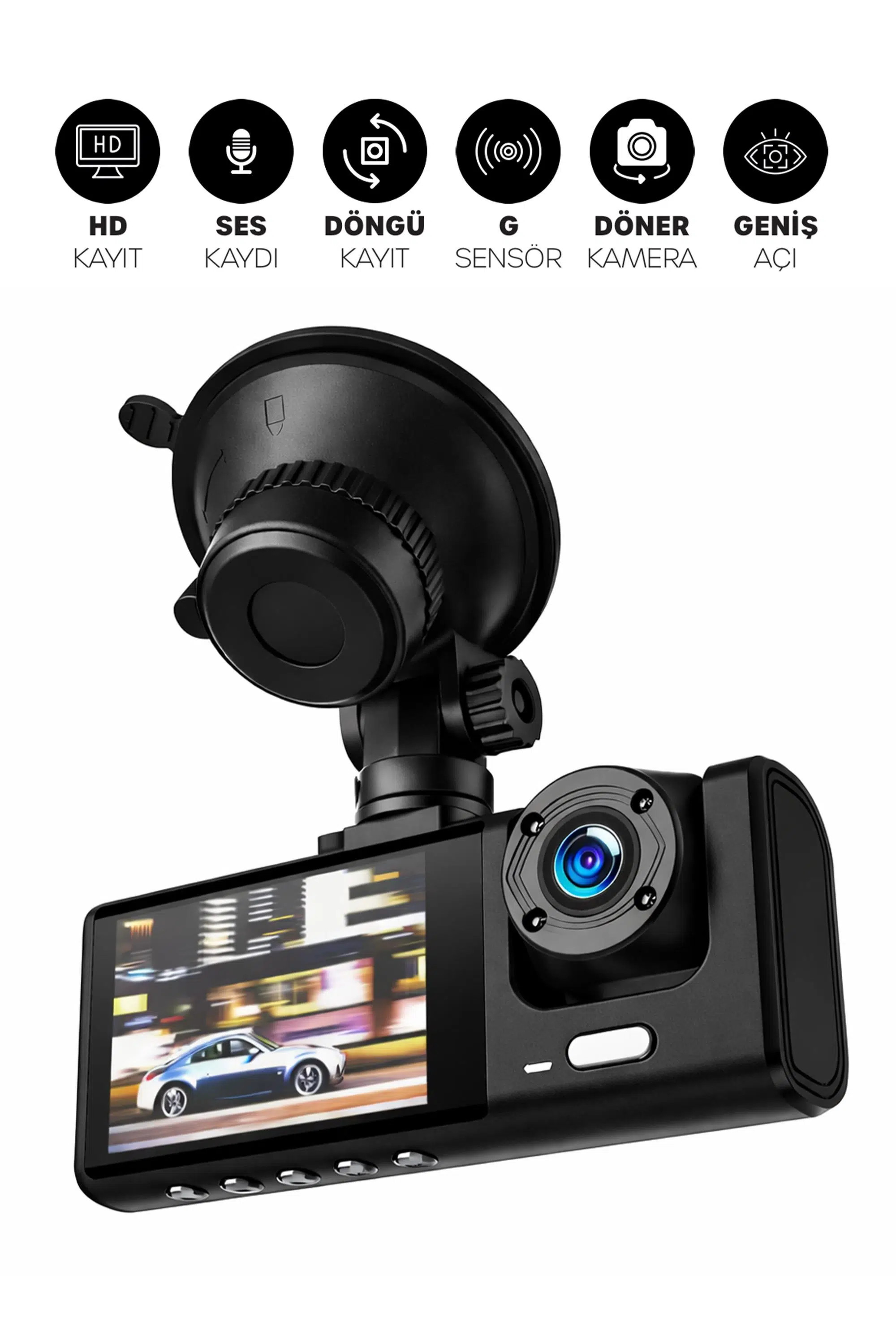 Ön yol, kabin/iç ve arka olmak üzere 3 farklı açıdan kayıt alarak sürüş anlarını ve araç içini daha kapsamlı şekilde kaydetmek için tasarlanmış çok kameralı araç kamerasıdır. 2 inç IPS ekranı, geniş açı lensleri, döngüsel kayıt, G-sensör ve ses kaydı özellikleriyle günlük kullanımda pratik ve güven verici bir çözümdür. Güçlü vakumlu aparatı sayesinde cama sağlam şekilde sabitlenir.