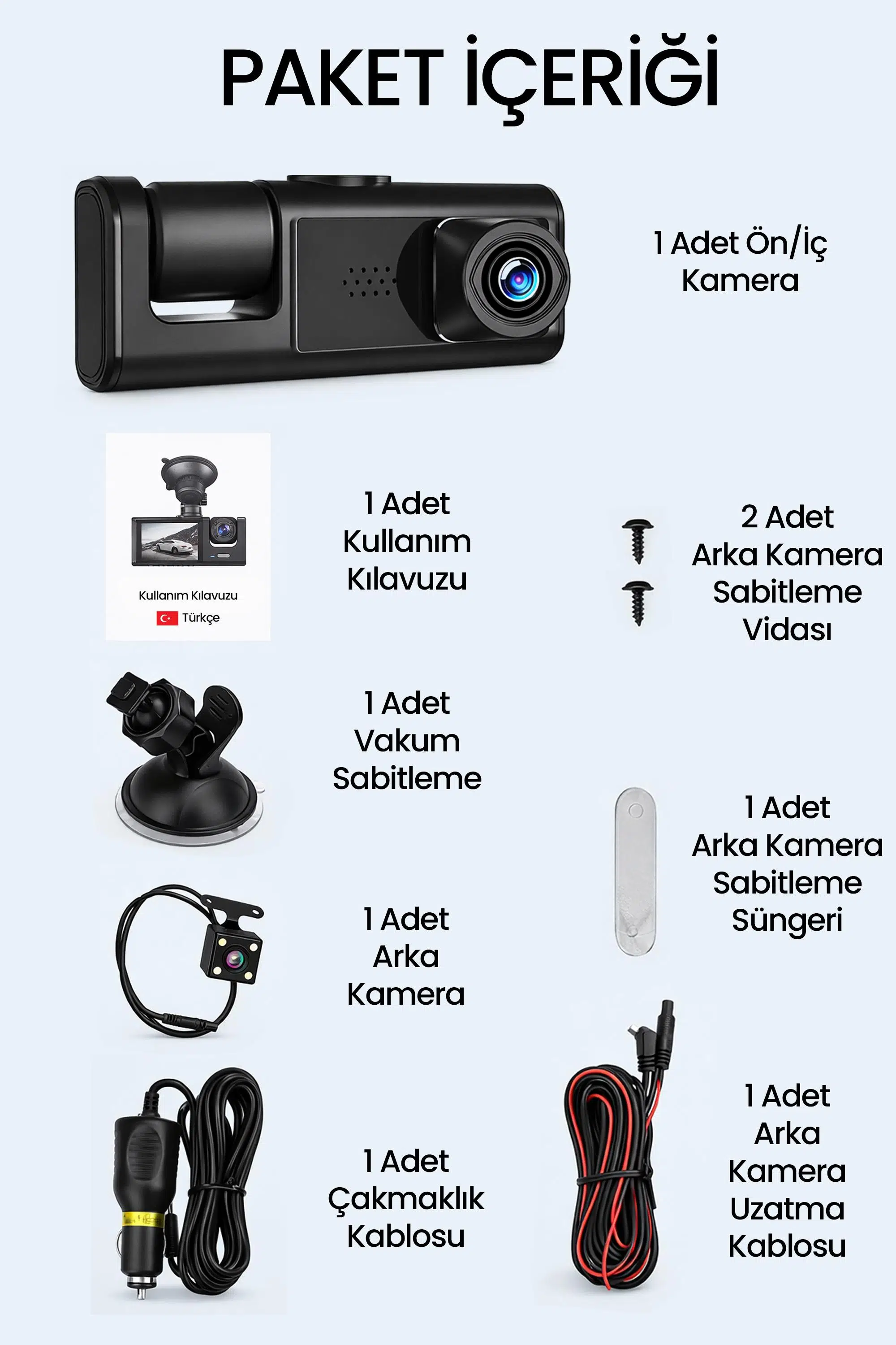 1 Adet Ön/İç Kamera (Ana Ünite)