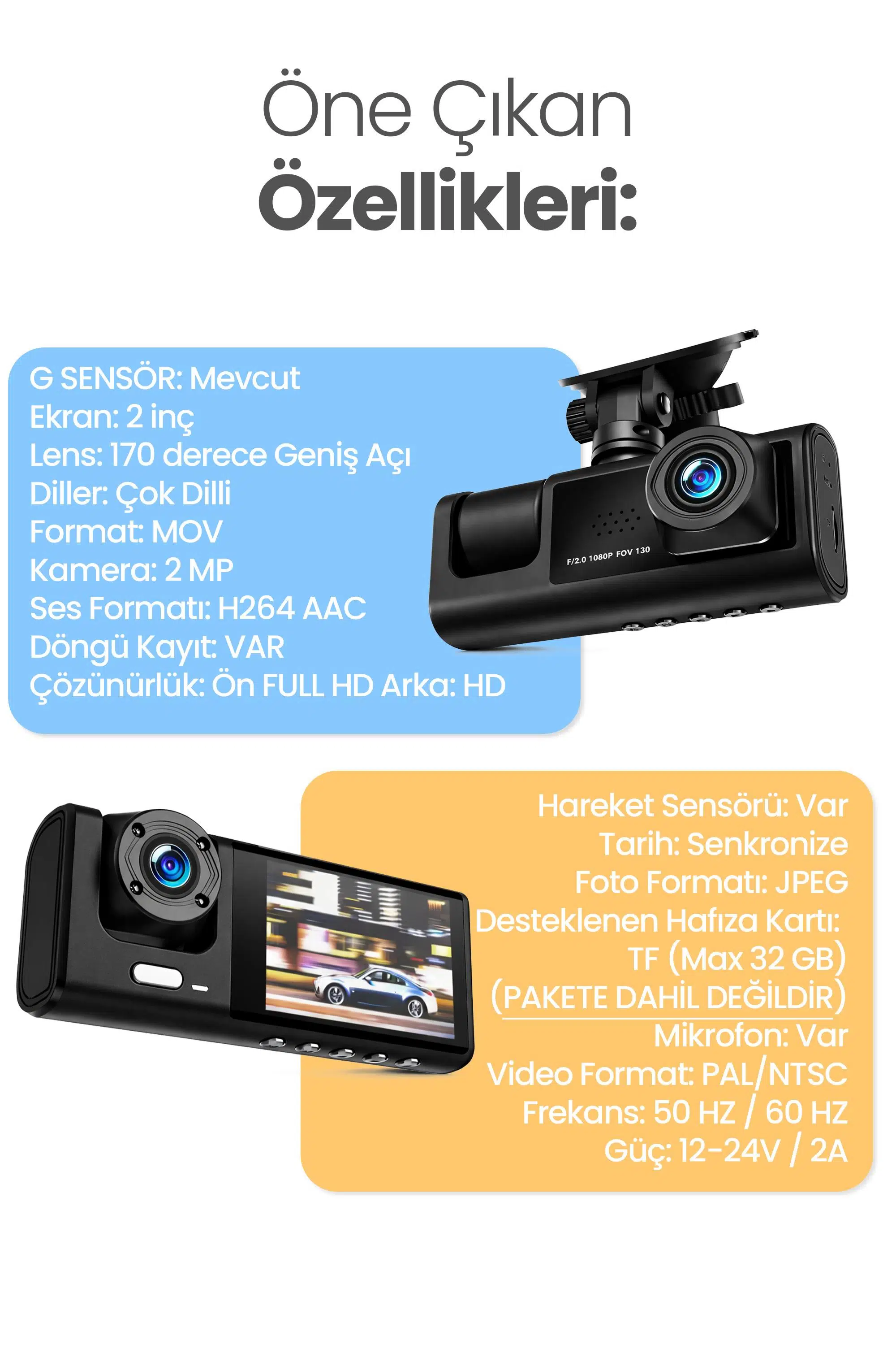 İç/Kabin Kamera: 720P – 120°