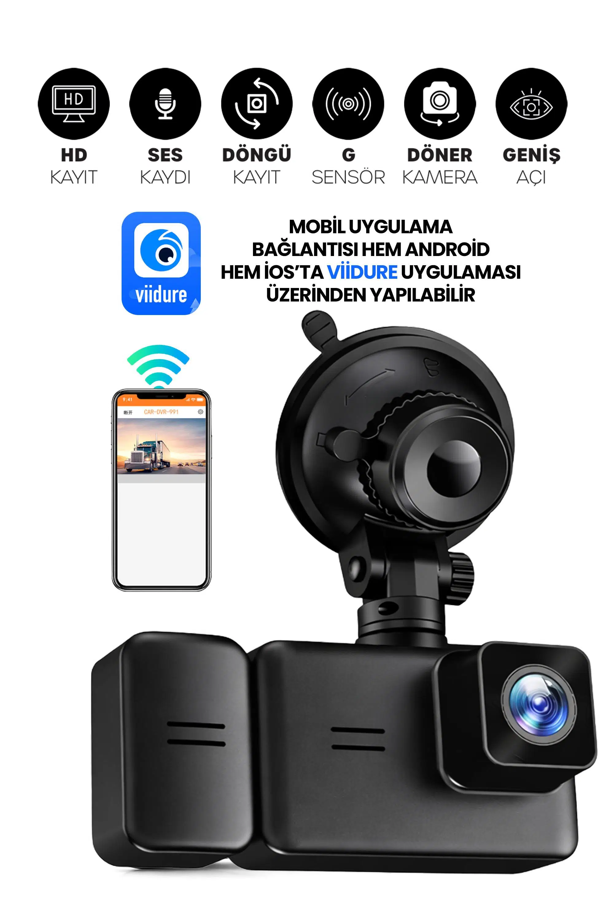 Aracınız için ön + iç/kabin + arka olmak üzere 3 ayrı açıdan kayıt alarak sürüş sırasında ve park halindeyken yaşanabilecek durumları belgelemeye yardımcı olan çok kameralı araç kayıt sistemidir. Ön kamera 1080P Full HD, iç/kabin ve arka kamera 720P kayıt sunar. 2” IPS ekranı üzerinden canlı görüntü/menü takibi yapılabilir, Wi-Fi ile Viidure mobil uygulaması üzerinden telefondan bağlantı kurulabilir.