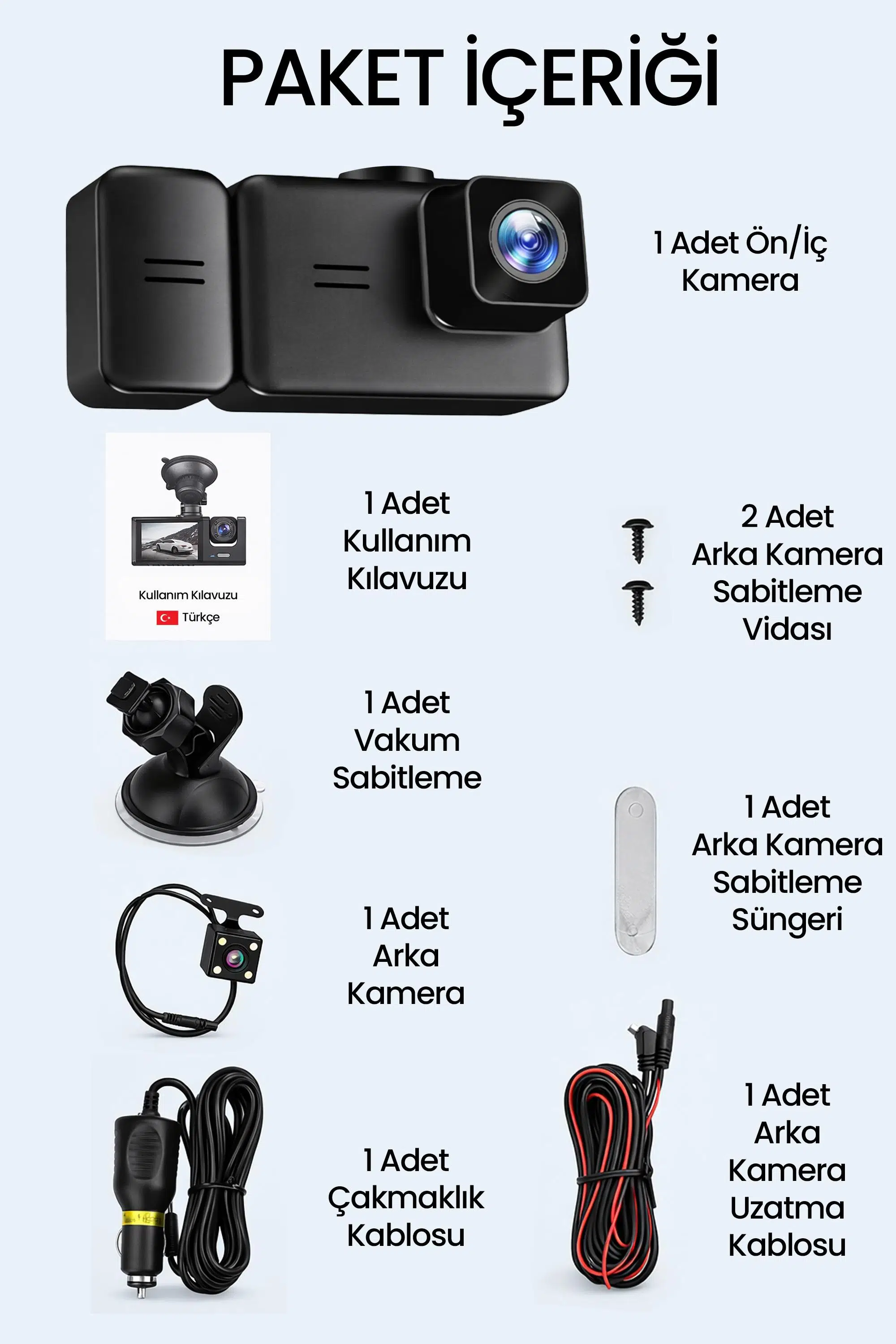 | Etiketler | 3 Kameralı Wifi Ekran Araç Kamerası FullHD Geniş Ön + Arka + Araç İçi Kamera Hareket Sensörü EF1313 |