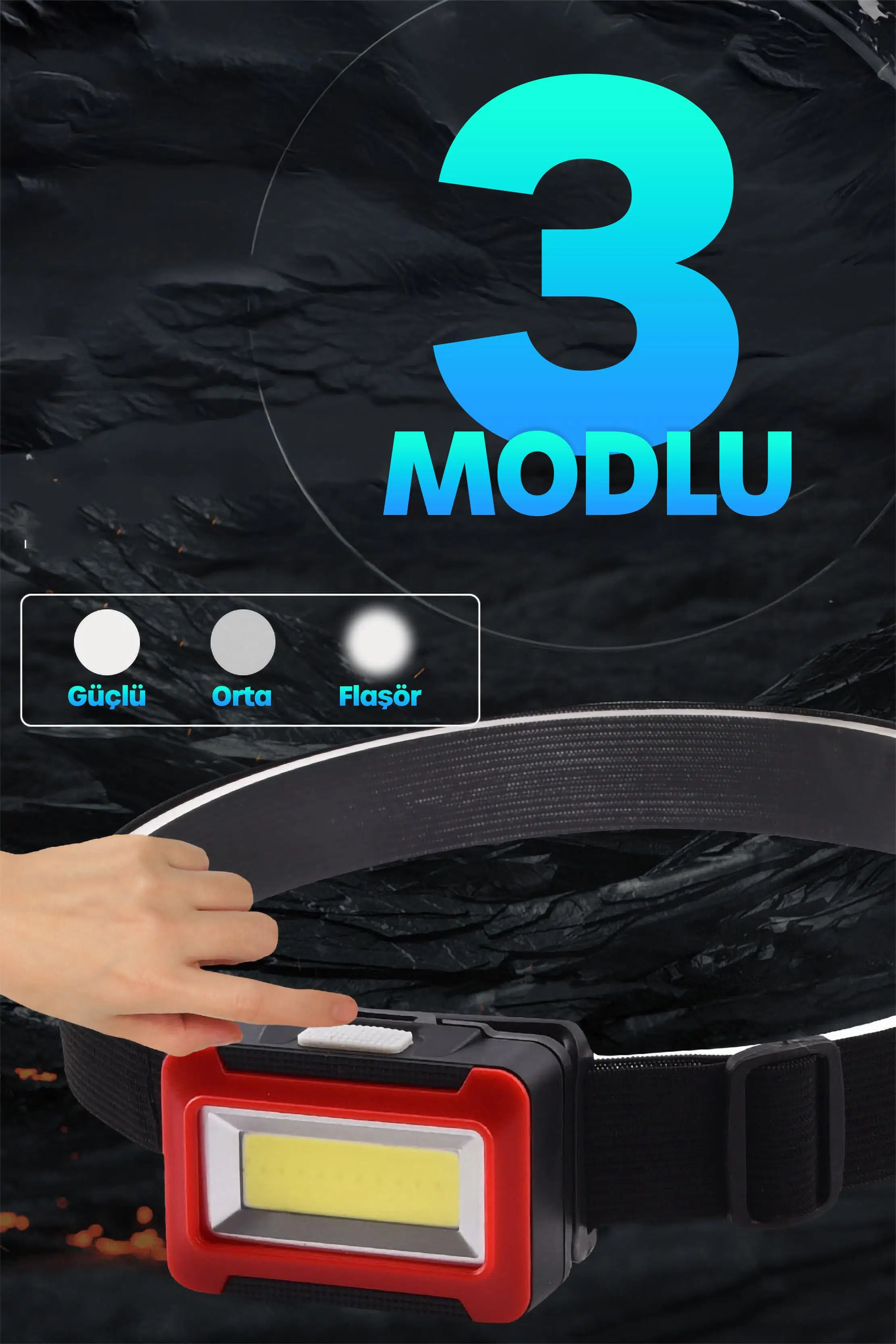 3 Işık Modu: Güçlü – Orta – Flaşör (SOS).