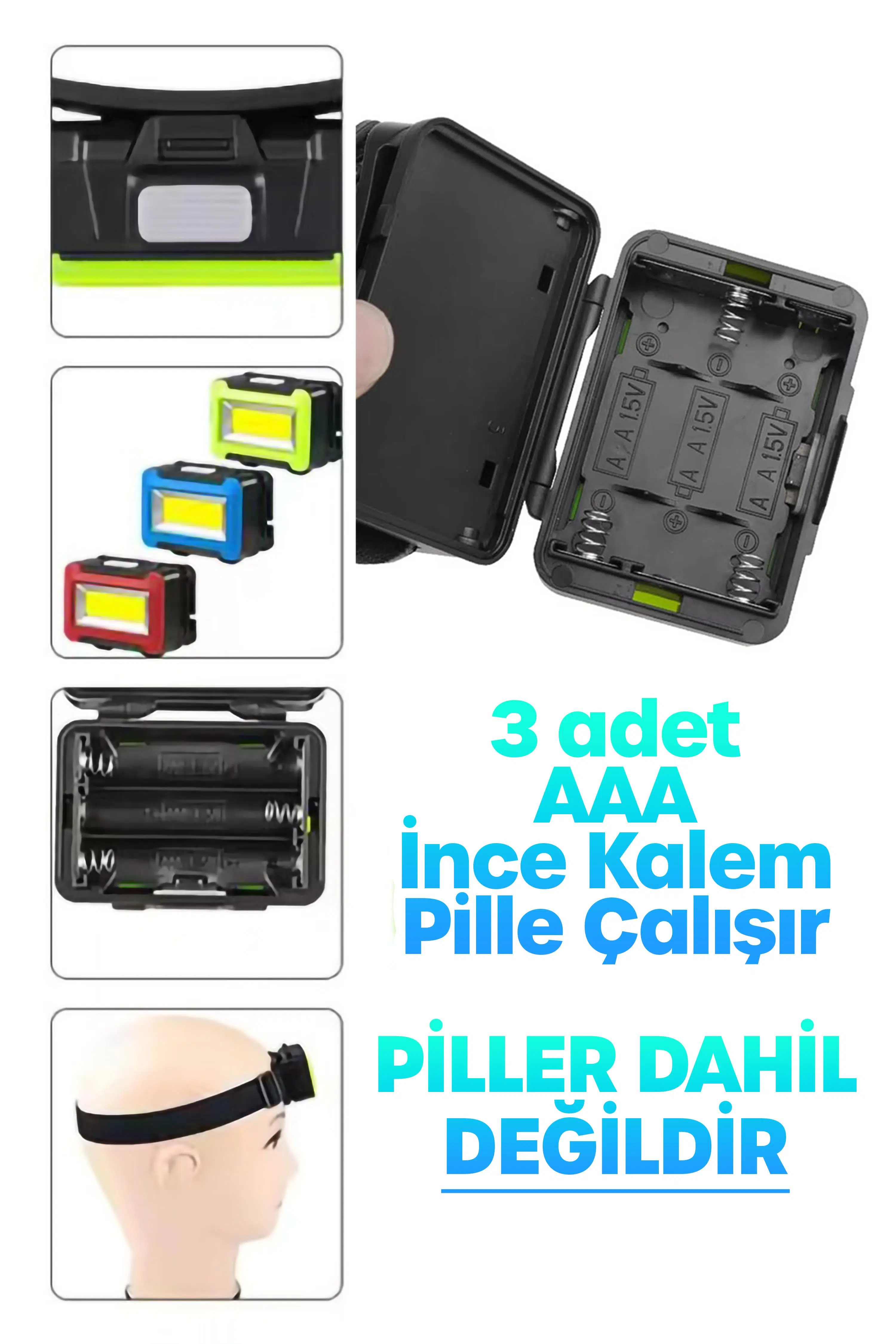 3 Modlu COB LED Kafa Feneri – 90° Ayarlanabilir, AAA Pille Çalışan, Taşınabilir Baş Feneri