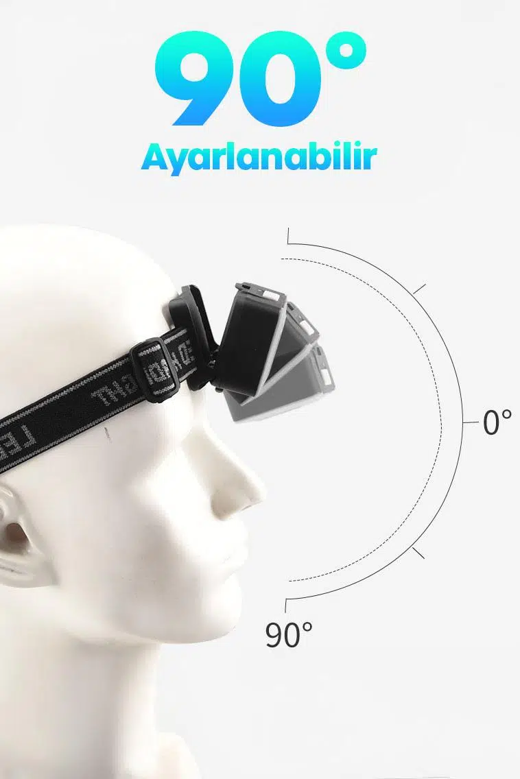 3 Modlu COB LED Kafa Feneri – 90° Ayarlanabilir, AAA Pille Çalışan, Taşınabilir Baş Feneri