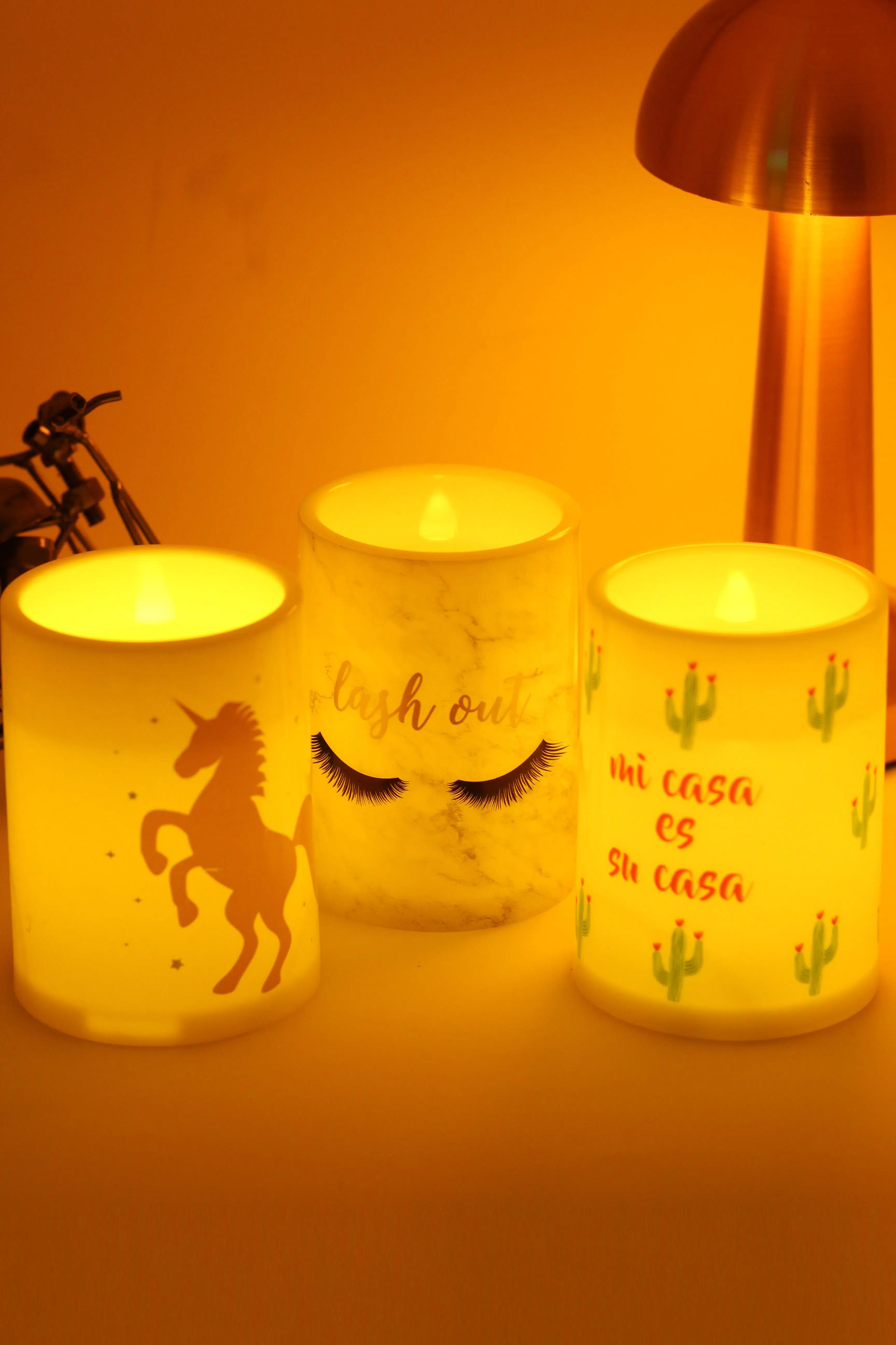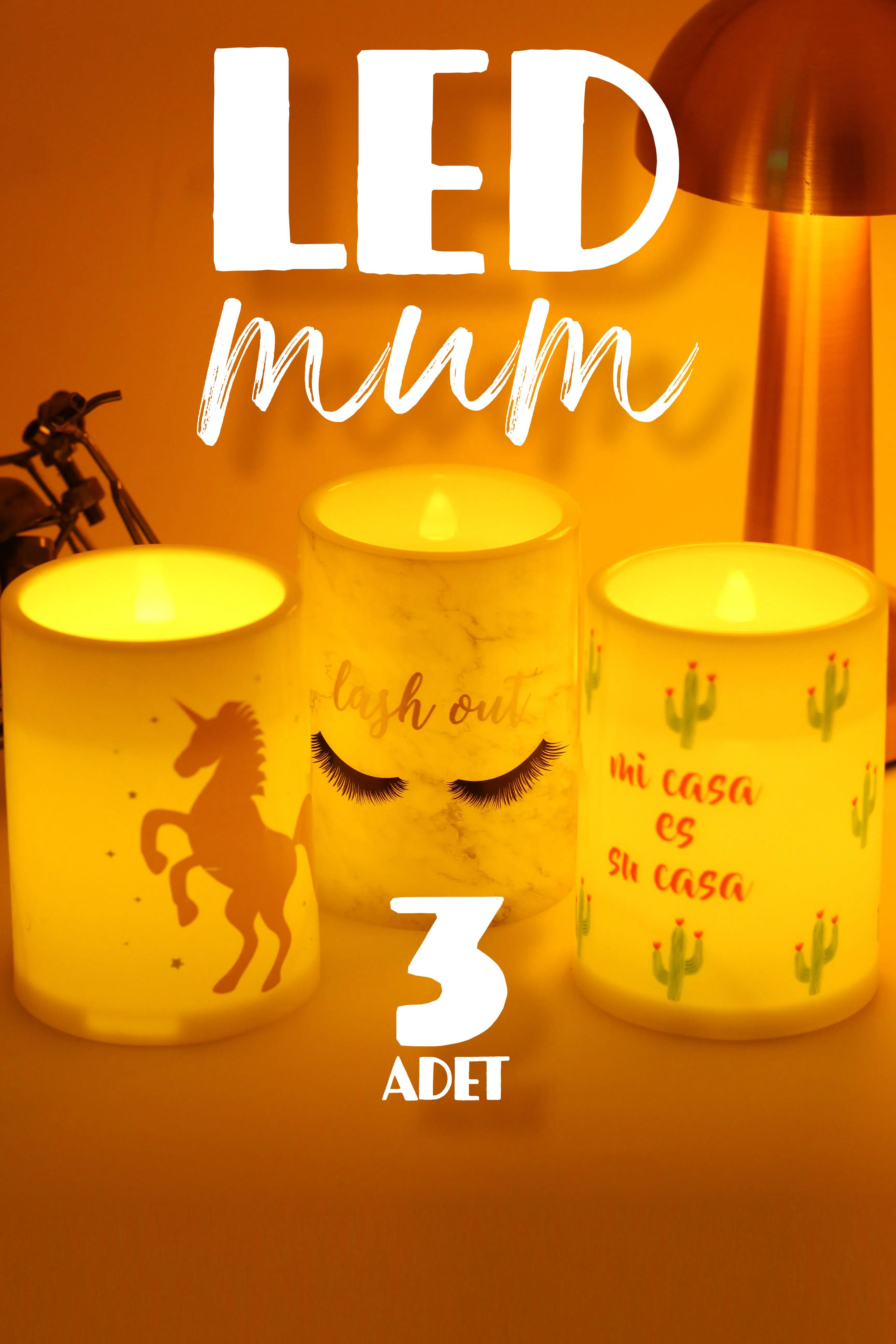 | Etiketler | 3lü Led Mum Unicorn Kirpik Kaktüs Bardak Tipi Pilli Dumansız Alevli Dekoratif Yapay Mum Dekor Lamba |
