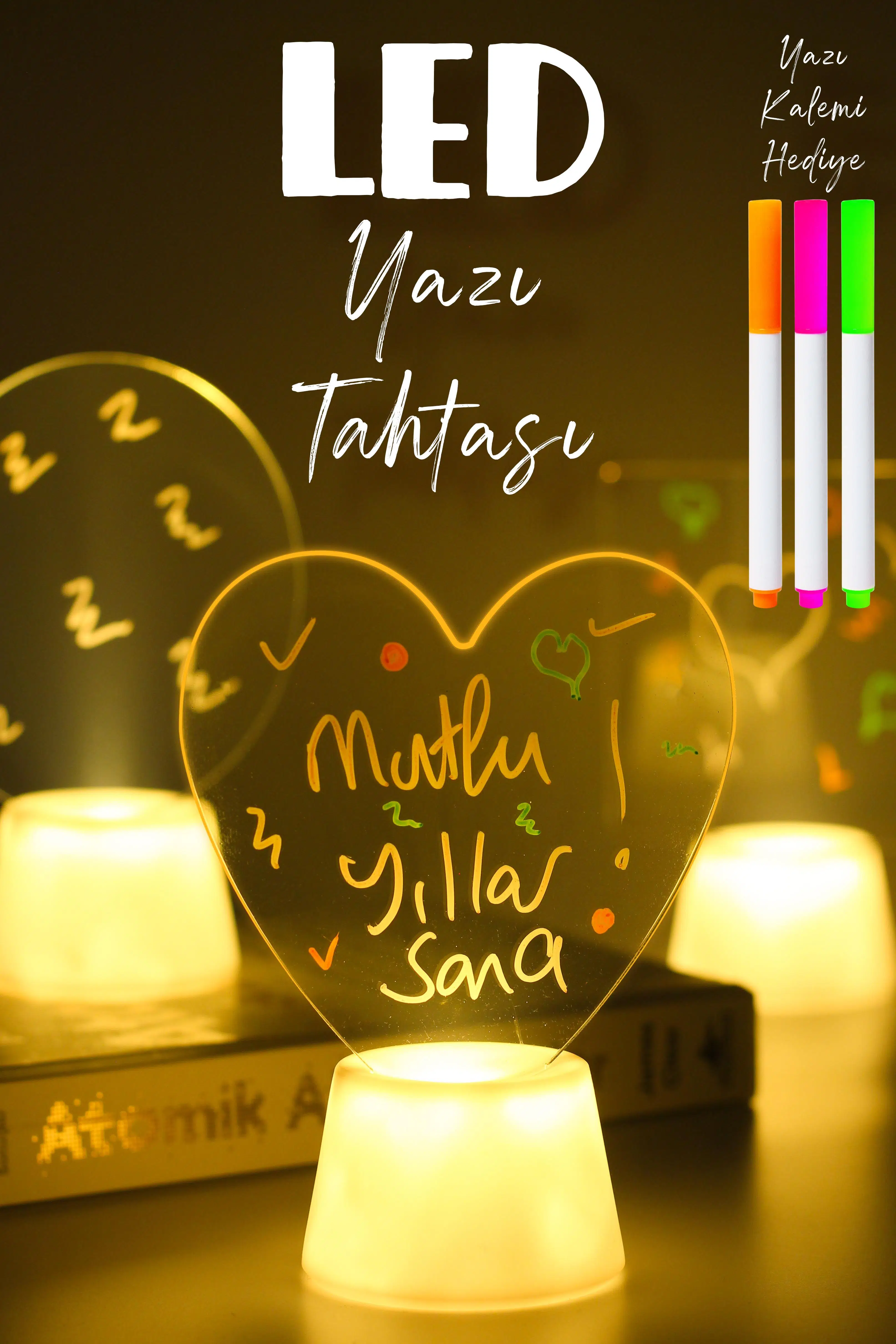 | Etiketler | 3lü LED Mum Yaz-Sil Işıklı 3 Kalemli Neon Yazı Tahtası Yazılıp Silinebilir Not Tahtası Akrilik |