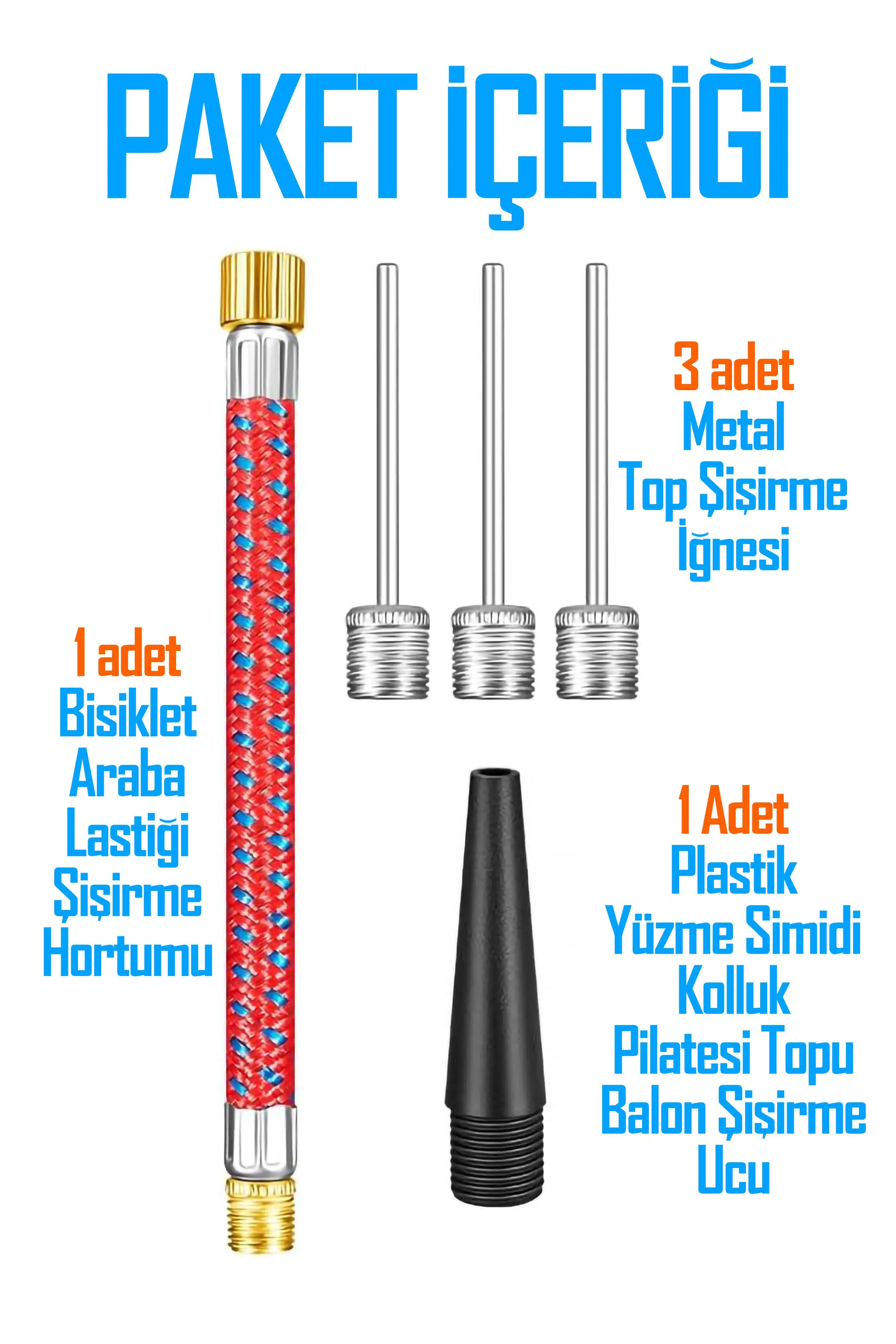 * **1 adet Bisiklet/Araba Lastiği Şişirme Hortumu:** Dayanıklı ve esnek hortumu ile bisiklet, araba lastiklerinizi ve diğer büyük hacimli ürünleri kolayca şişirin.