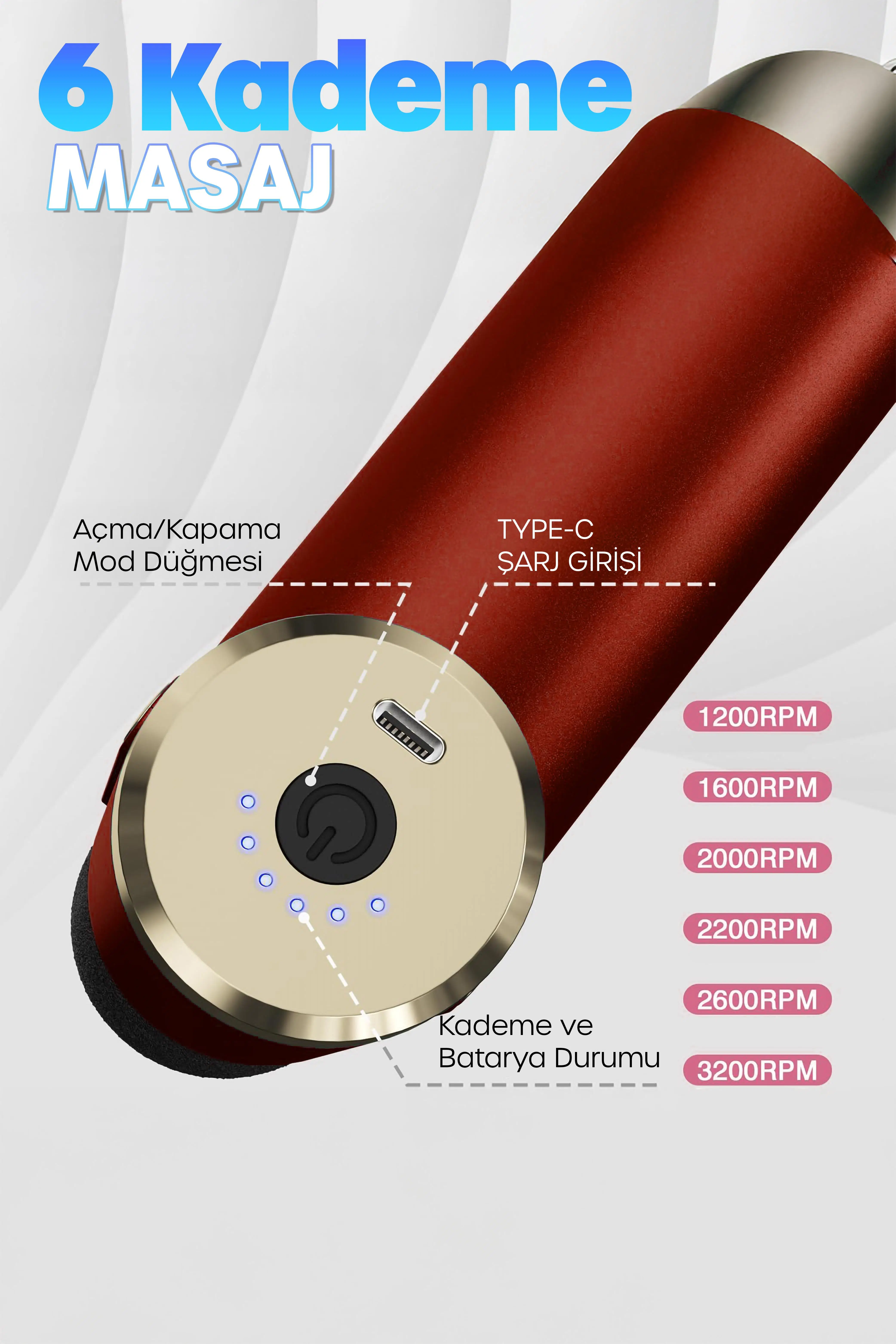| Etiketler | 6 MOD Masaj Tabancası Sporcu Masaj Aleti 4 Başlıklı Şarjlı Titreşimli Sporcu Masaj Aleti Kırmızı 2028 |