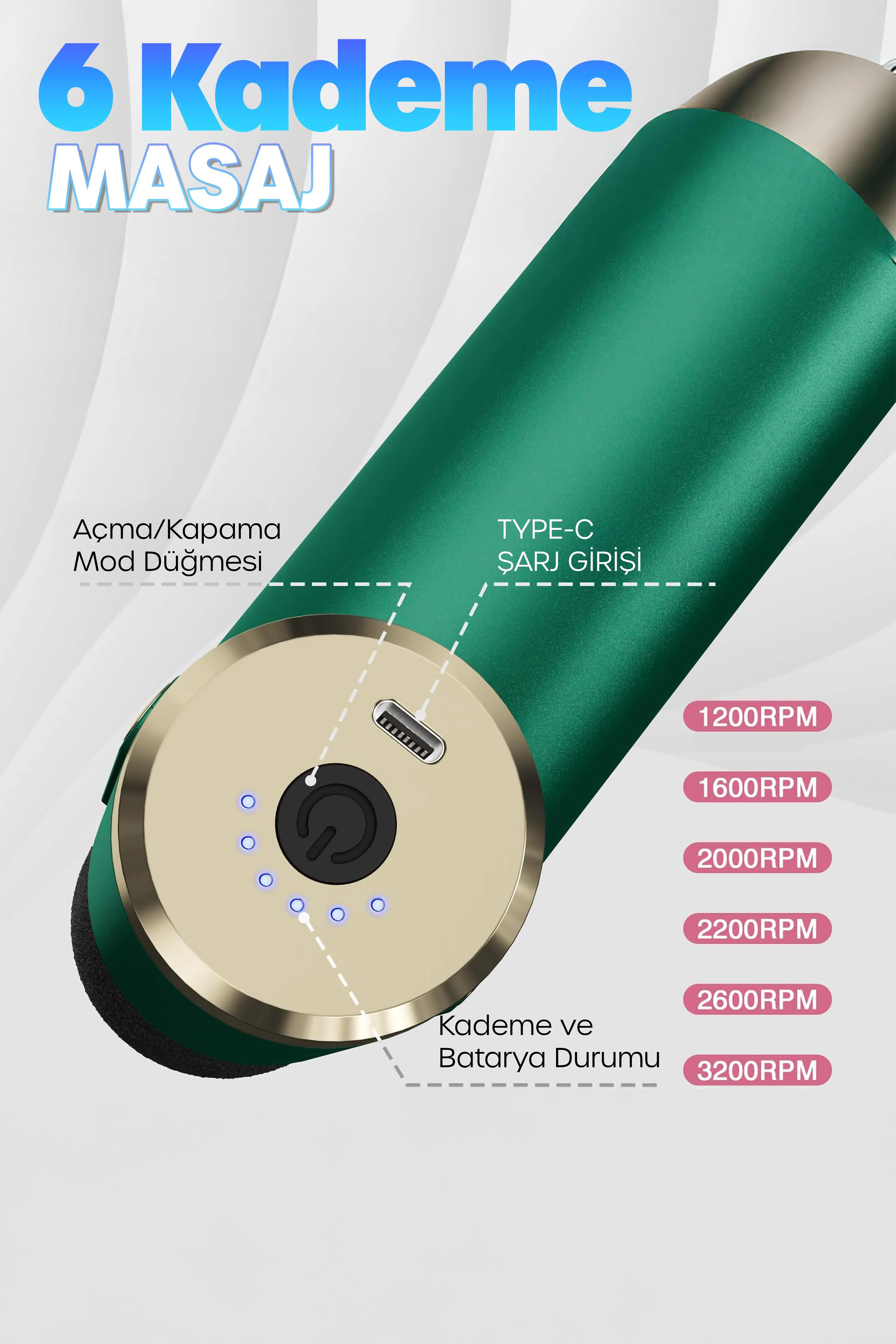 | Etiketler | 6 MOD Masaj Tabancası Sporcu Masaj Aleti 4 Başlıklı Şarjlı Titreşimli Sporcu Masaj Aleti Yeşil 2028 |