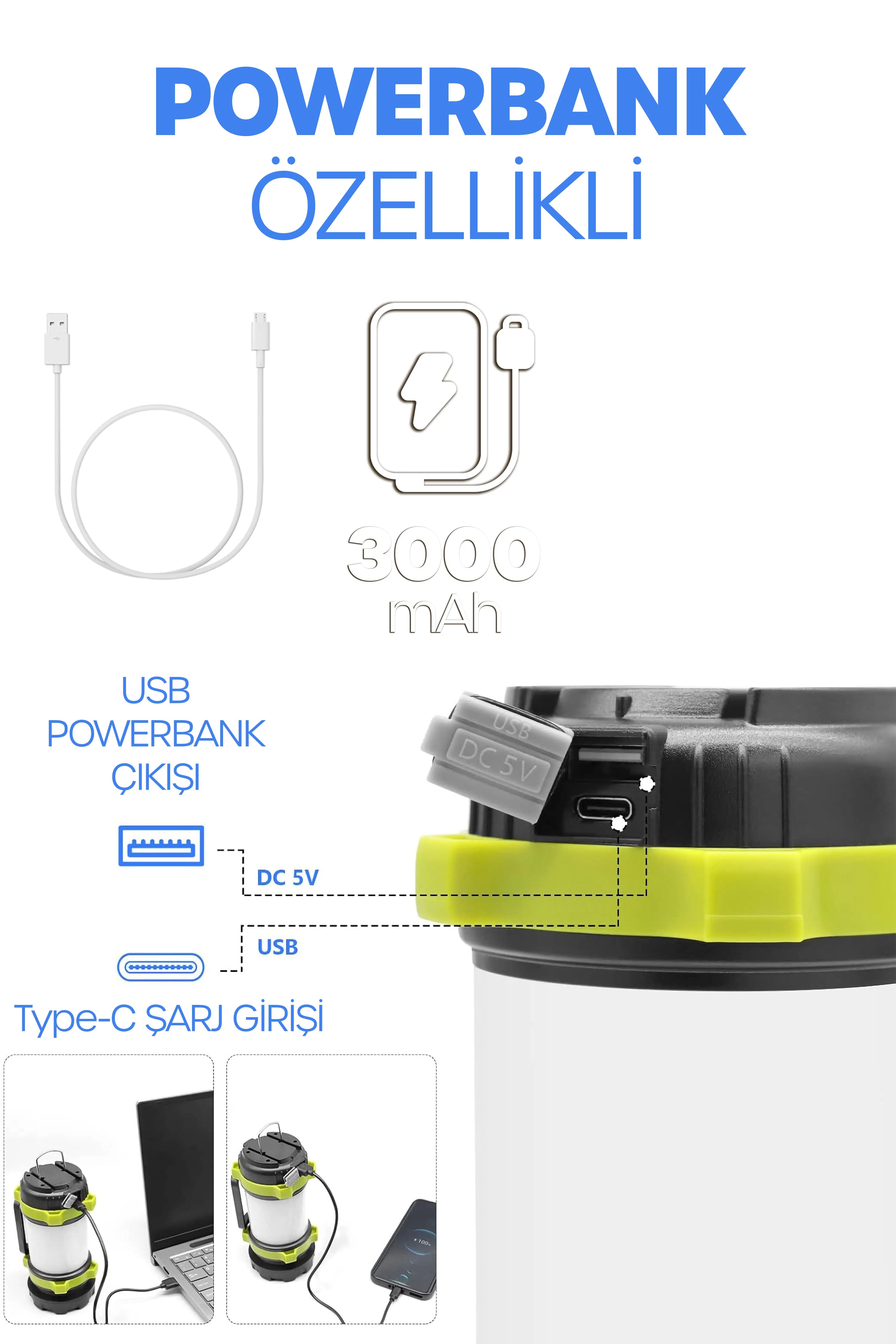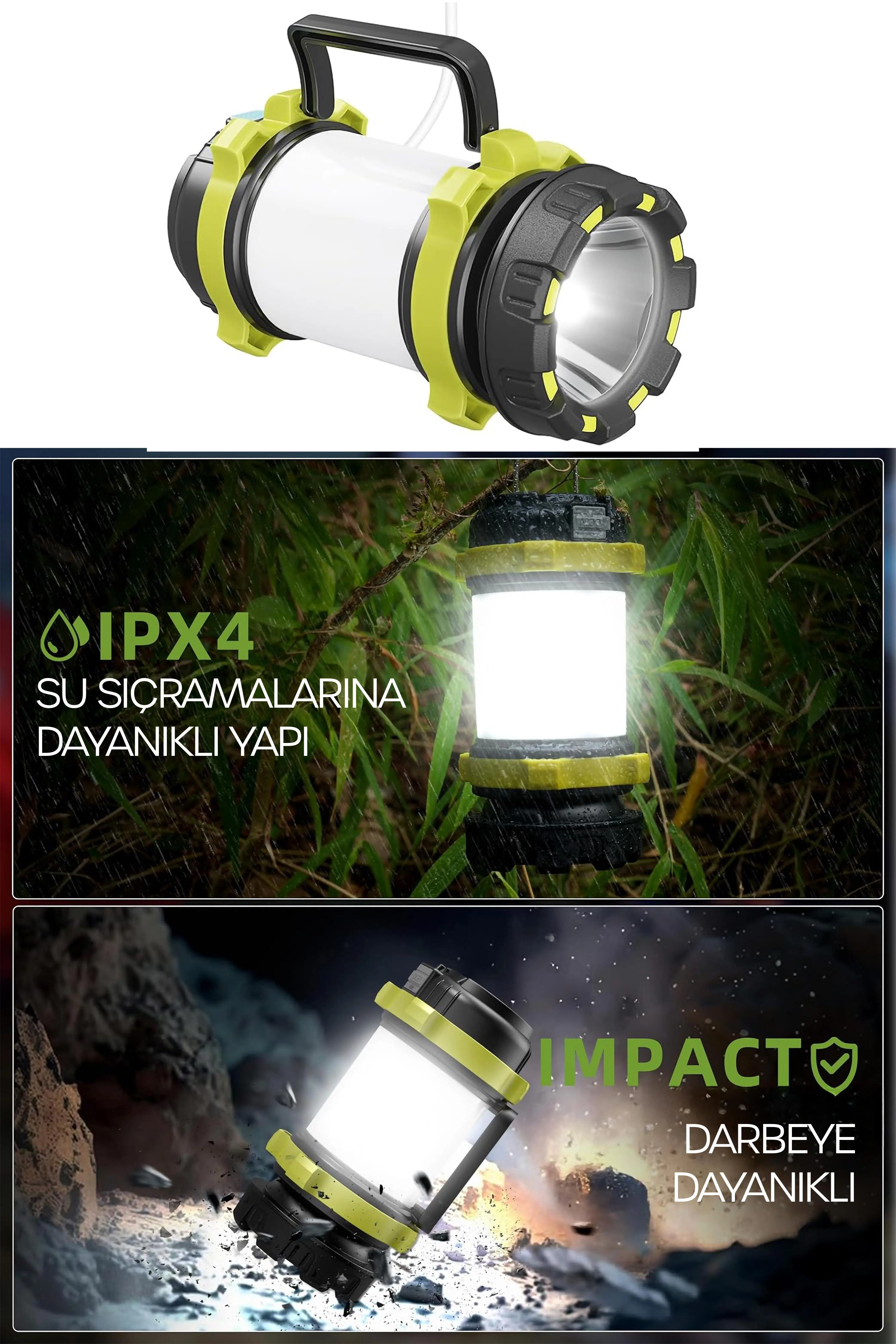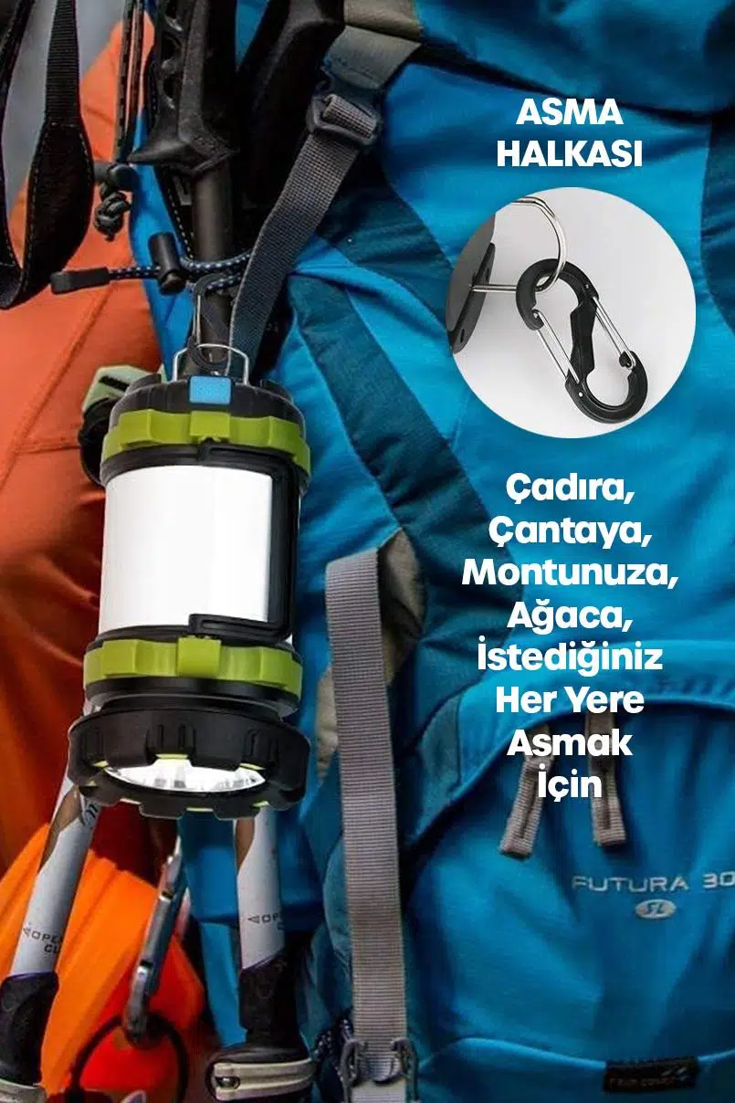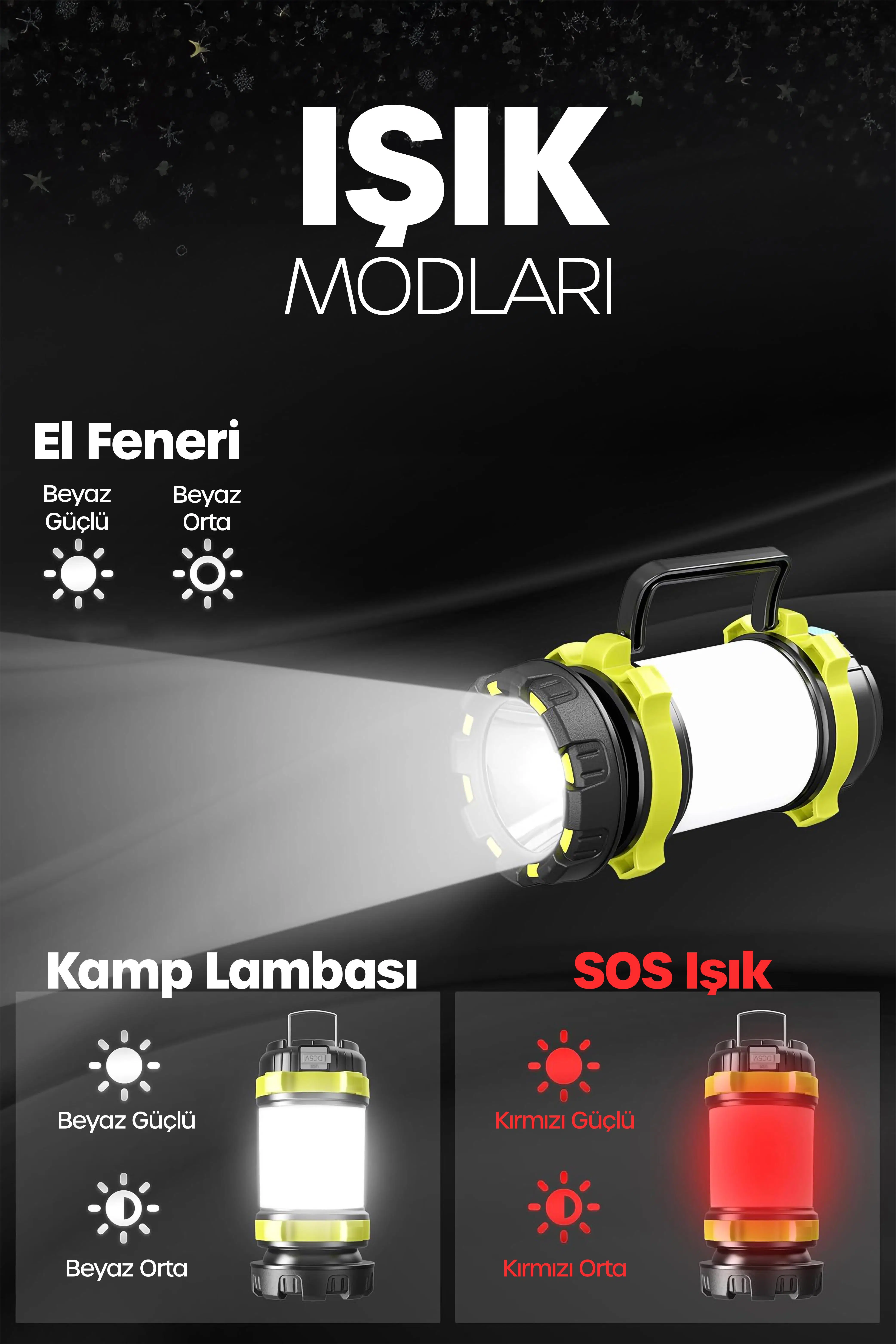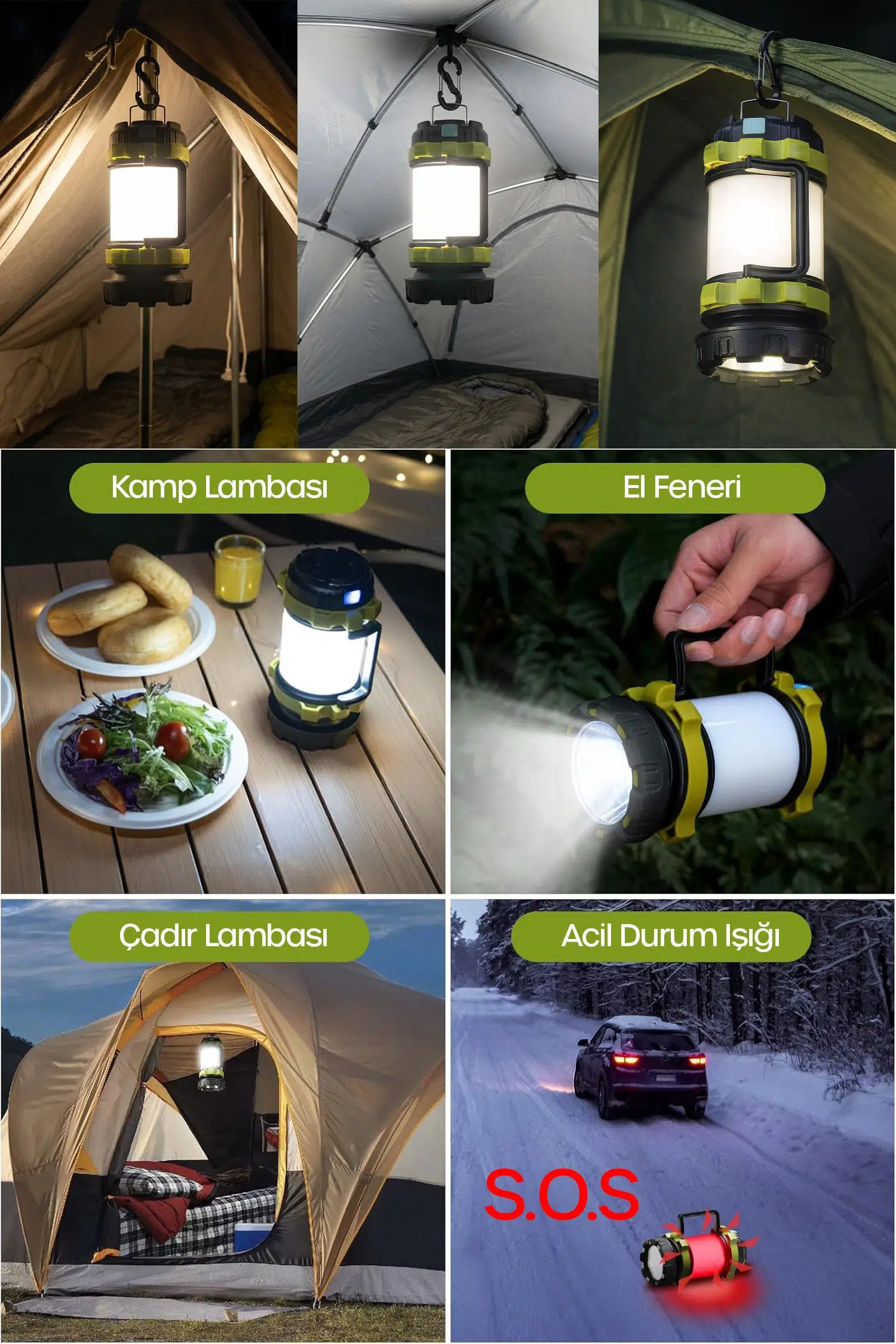 Çok Fonksiyonlu Kullanım: Kamp lambası, el feneri ve acil durum ışığı olarak tek üründe 3 kullanım.