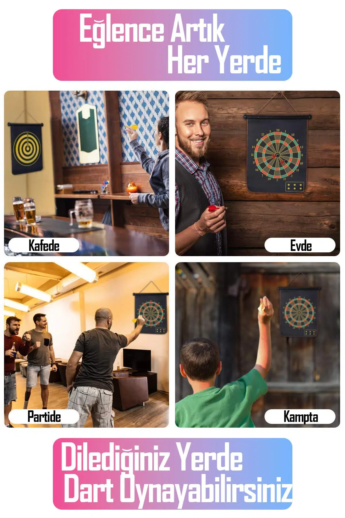 Arkadaşlarına meydan okumanın en eğlenceli yolu. Dartlar manyetik uçludur, zararsızdır. Çocuklarınızın güvenli şekilde oynaması için üretilmiştir. Ayrıca katlanabilir özelliği sayesinde dart tabelasını taşımak ve saklamak çok kolay.