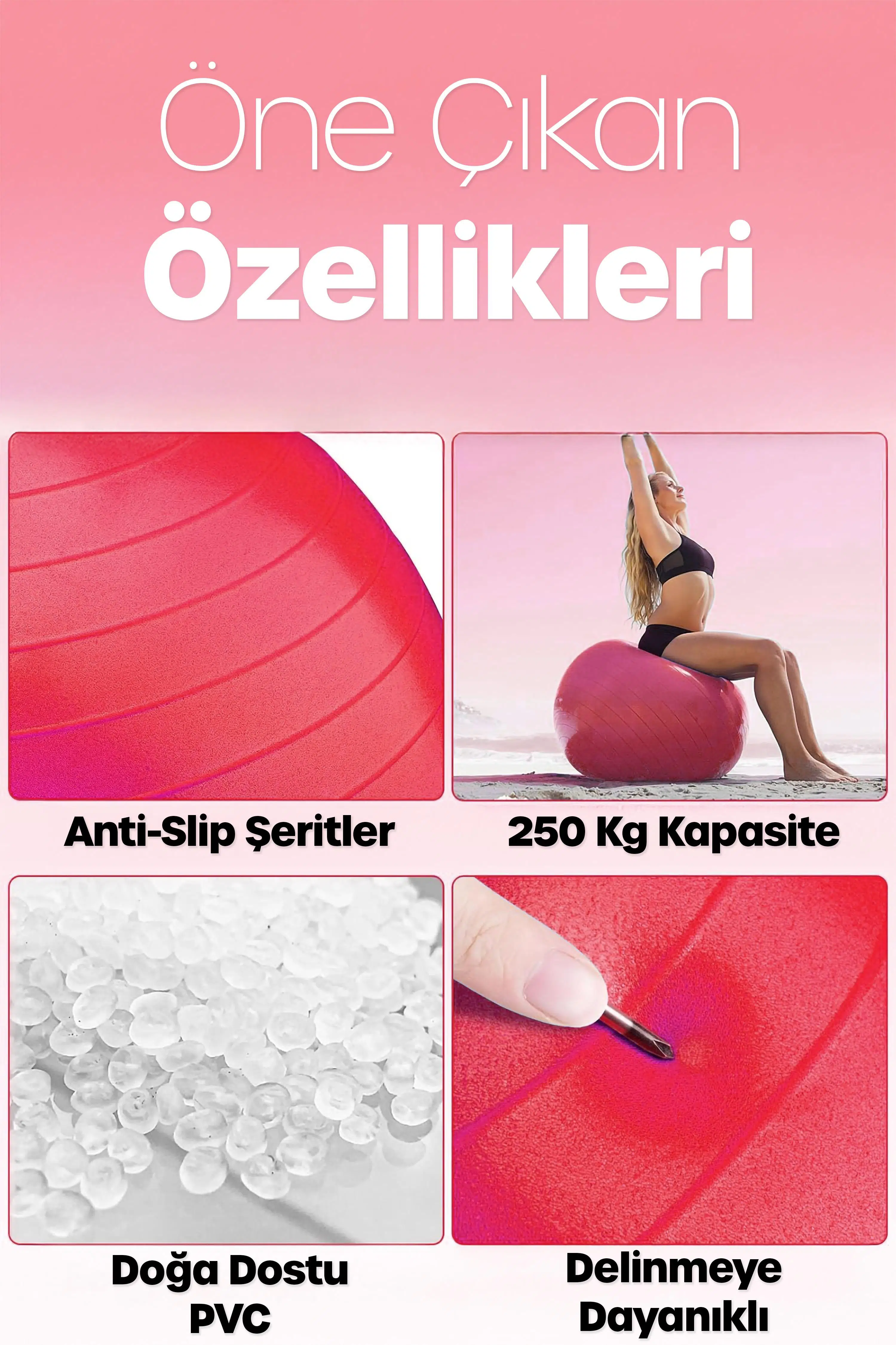 Etiketler | 65 cm Pilates Topu ve Pompa Seti | 155-170 cm Boy İçin Uygun Dayanıklı Anti-Slip Kırmızı |