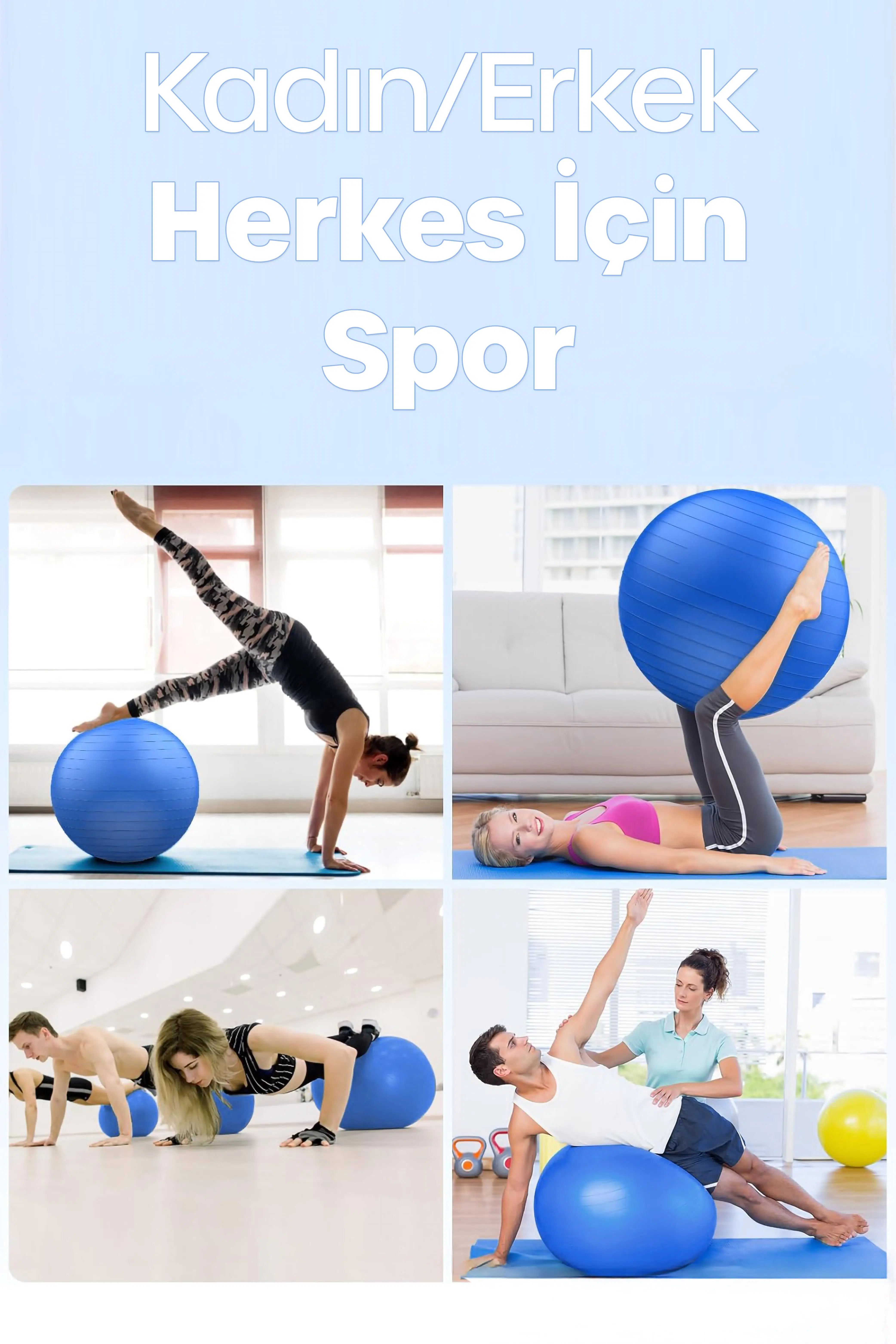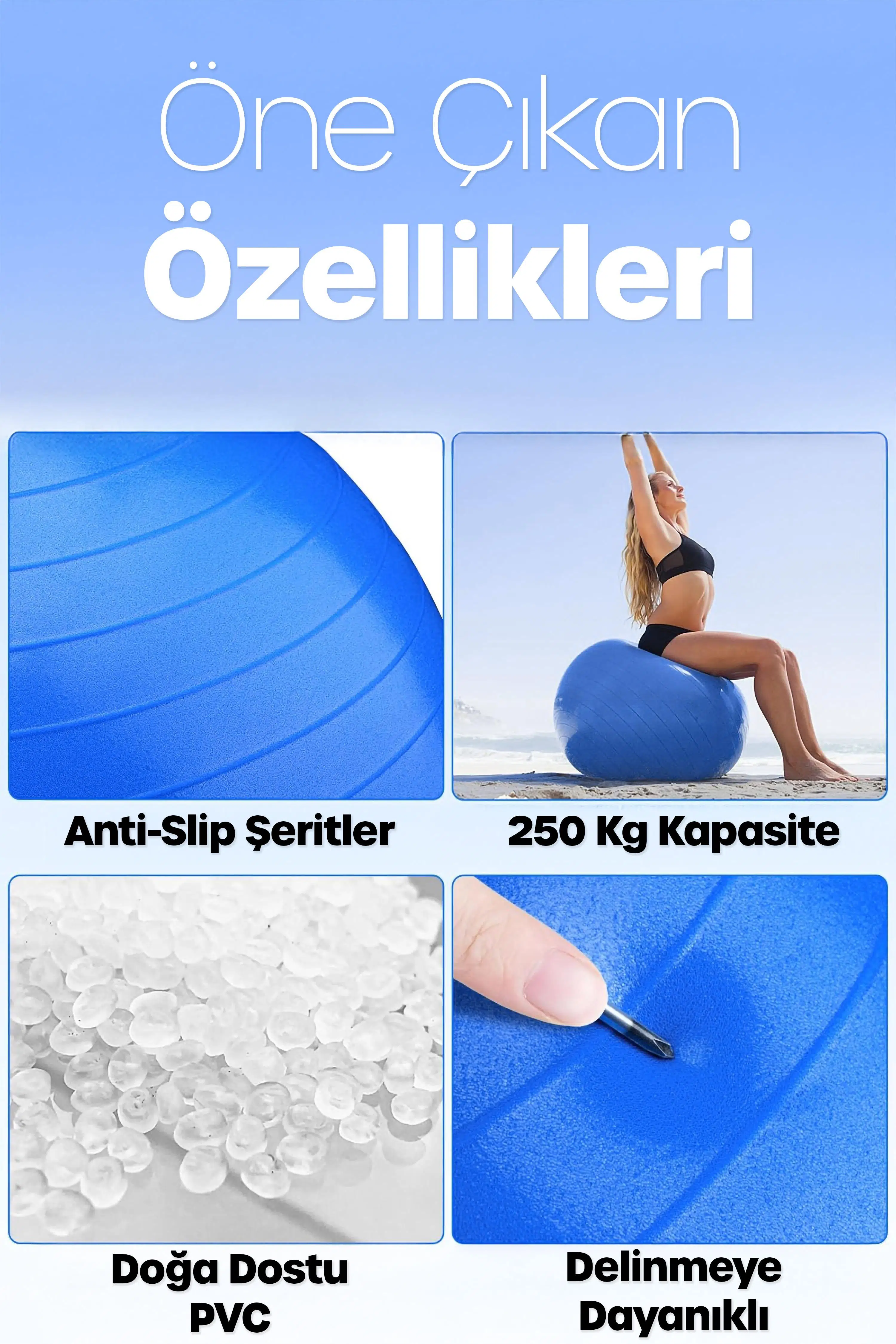 Etiketler | 65 cm Pilates Topu ve Pompa Seti | 155-170 cm Boy İçin Uygun Dayanıklı Anti-Slip Mavi |