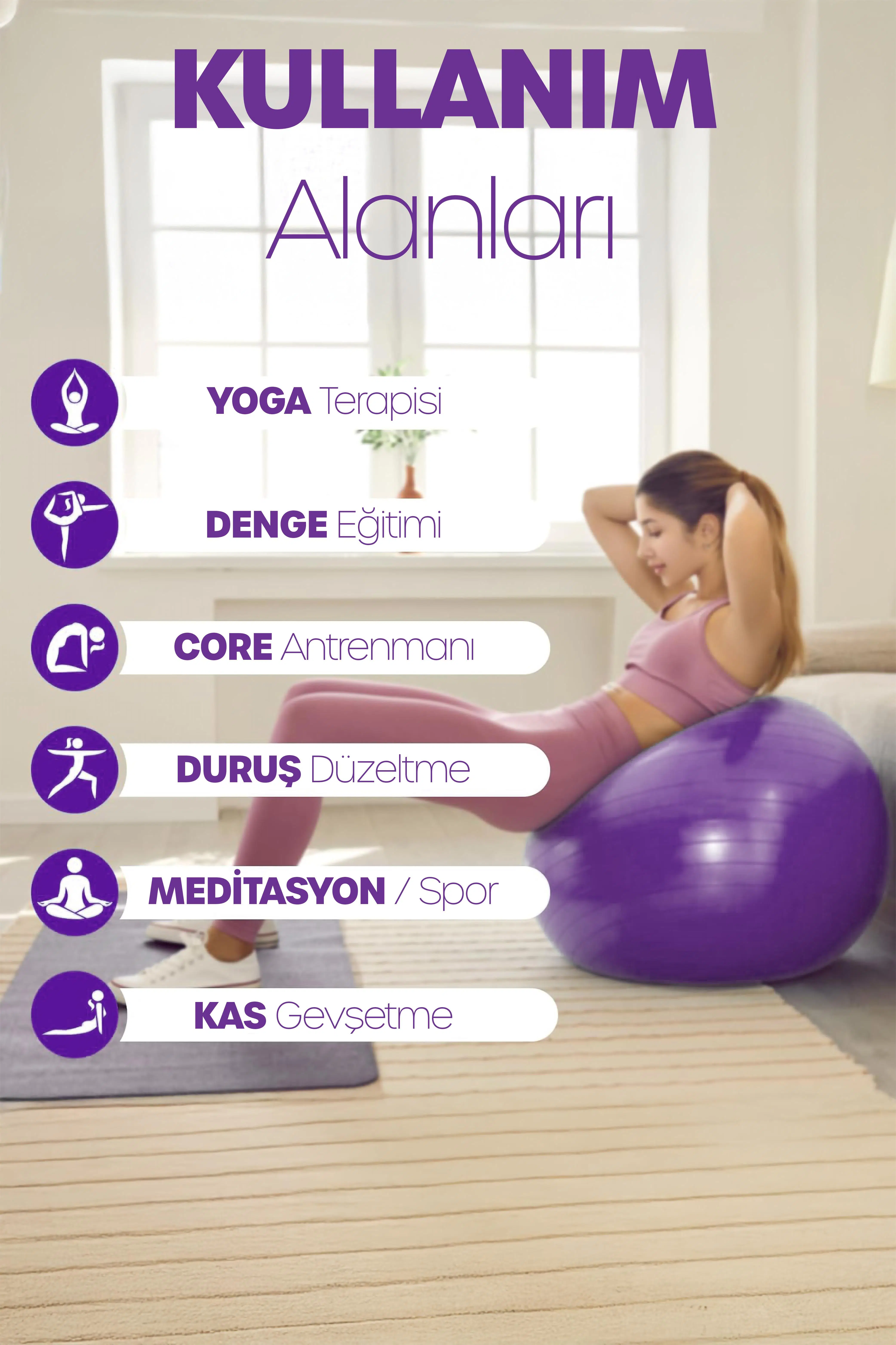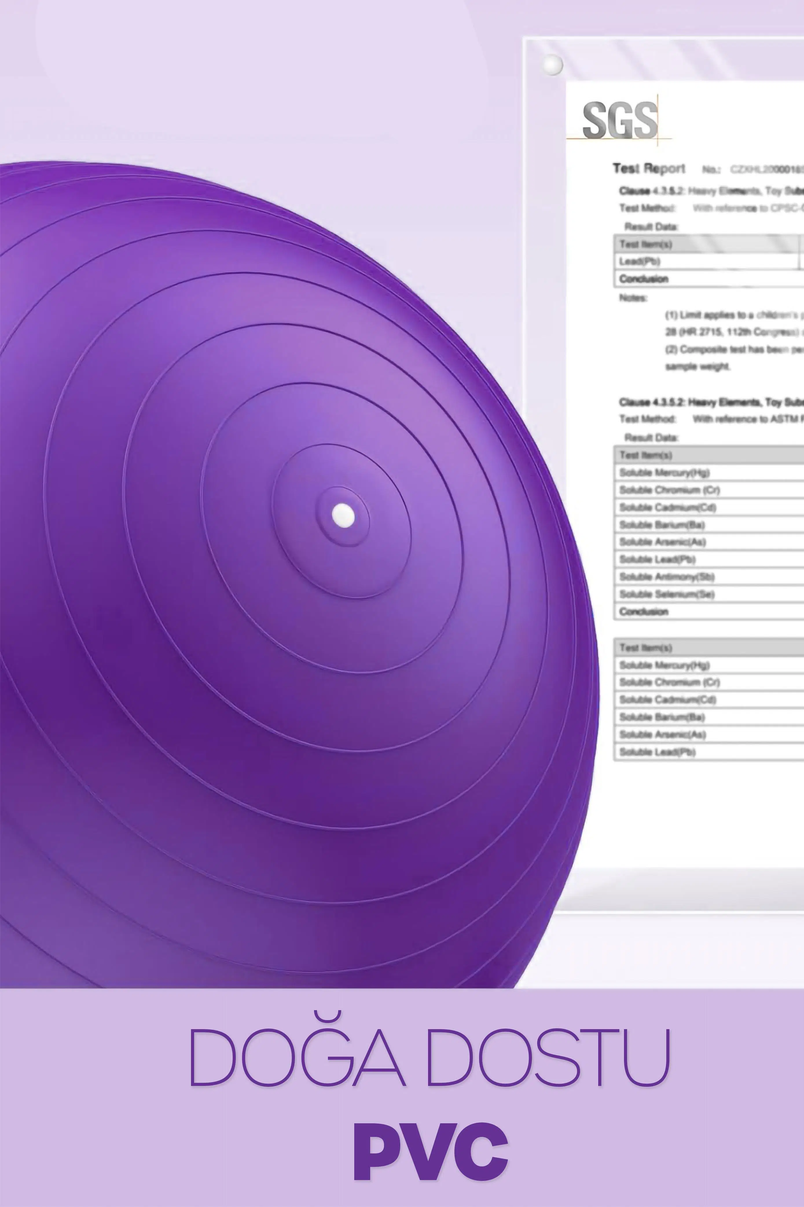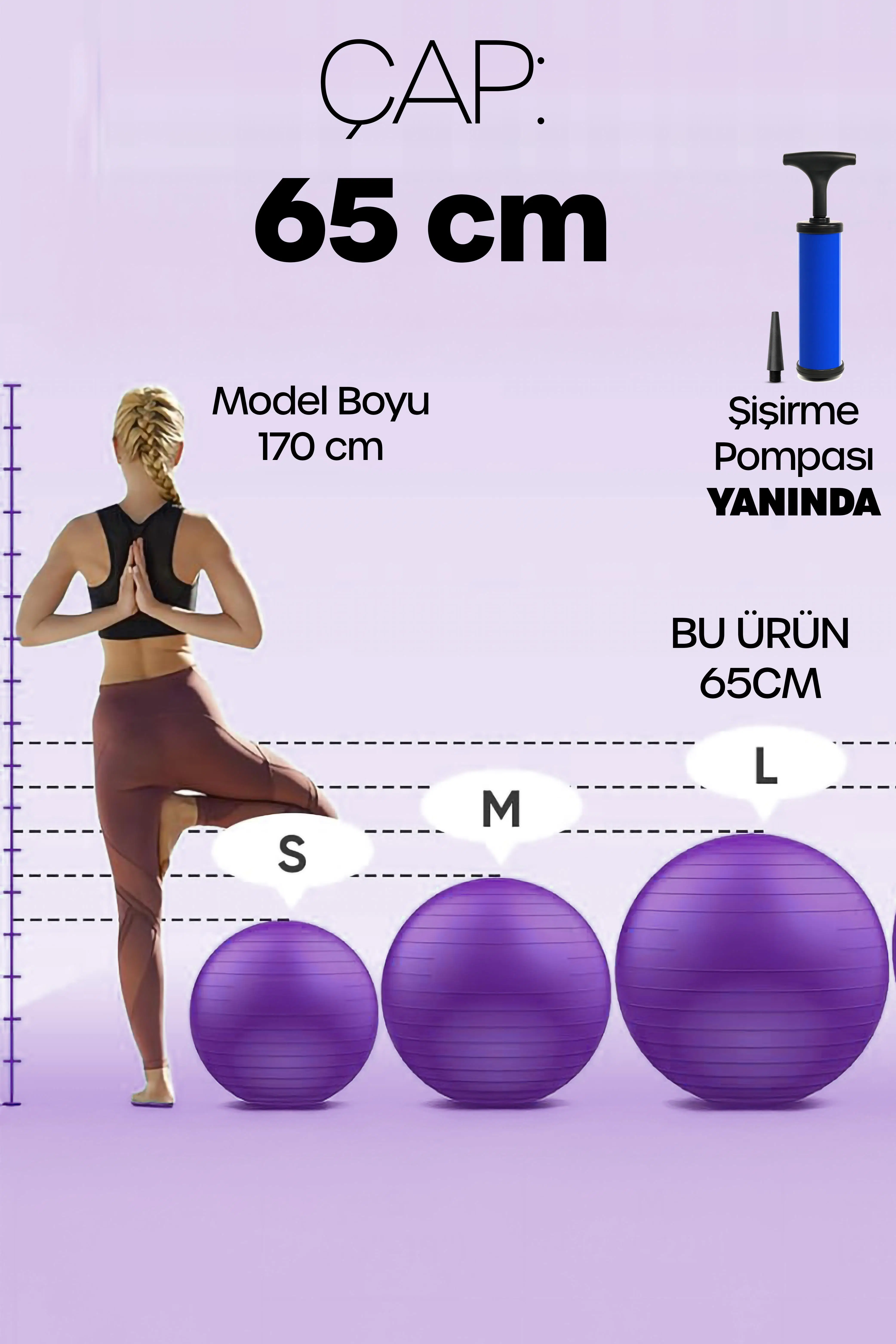 Etiketler | 65 cm Pilates Topu ve Pompa Seti | 155-170 cm Boy İçin Uygun Dayanıklı Anti-Slip Mor |
