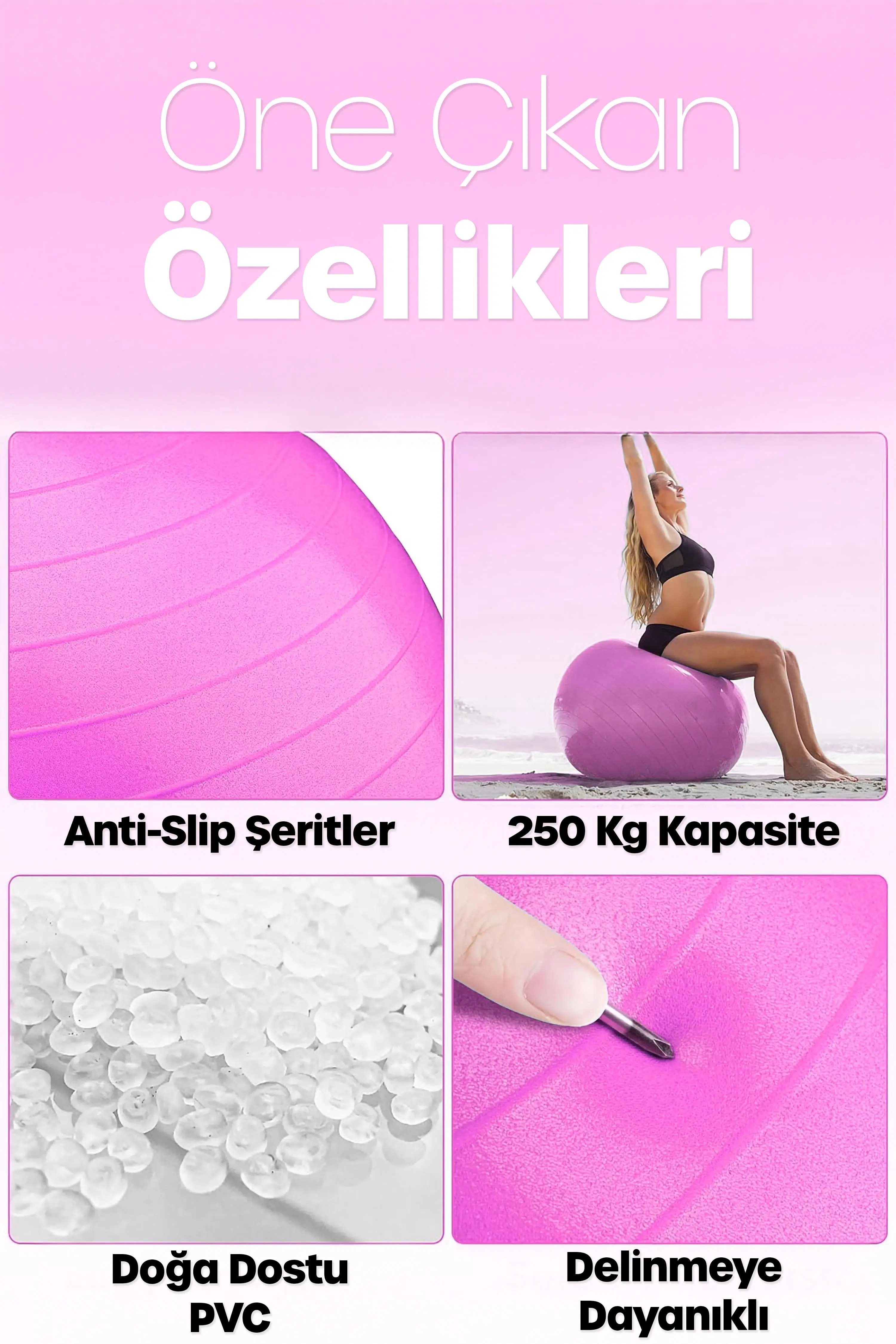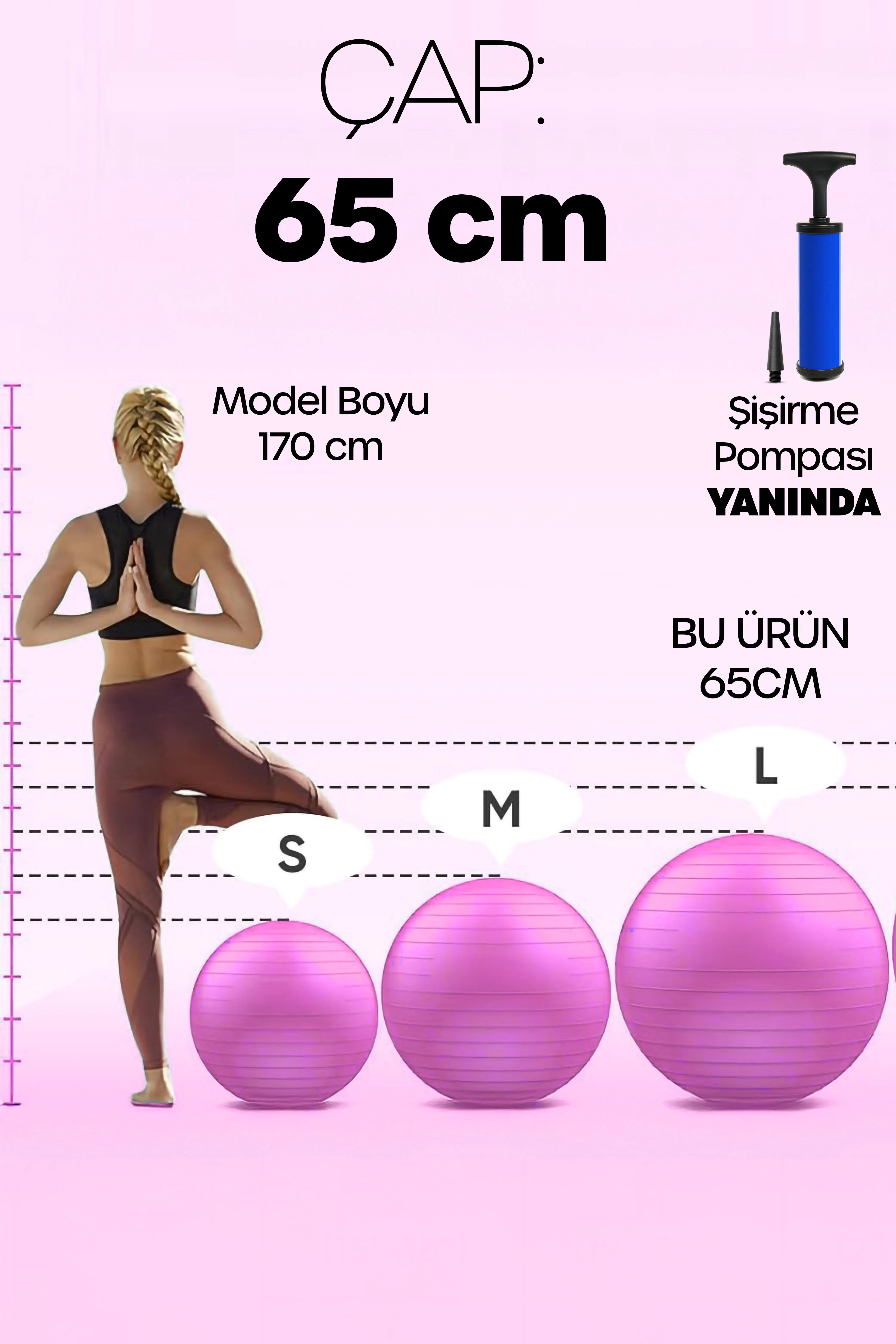 Etiketler | 65 cm Pilates Topu ve Pompa Seti | 155-170 cm Boy İçin Uygun Dayanıklı Anti-Slip Pembe |
