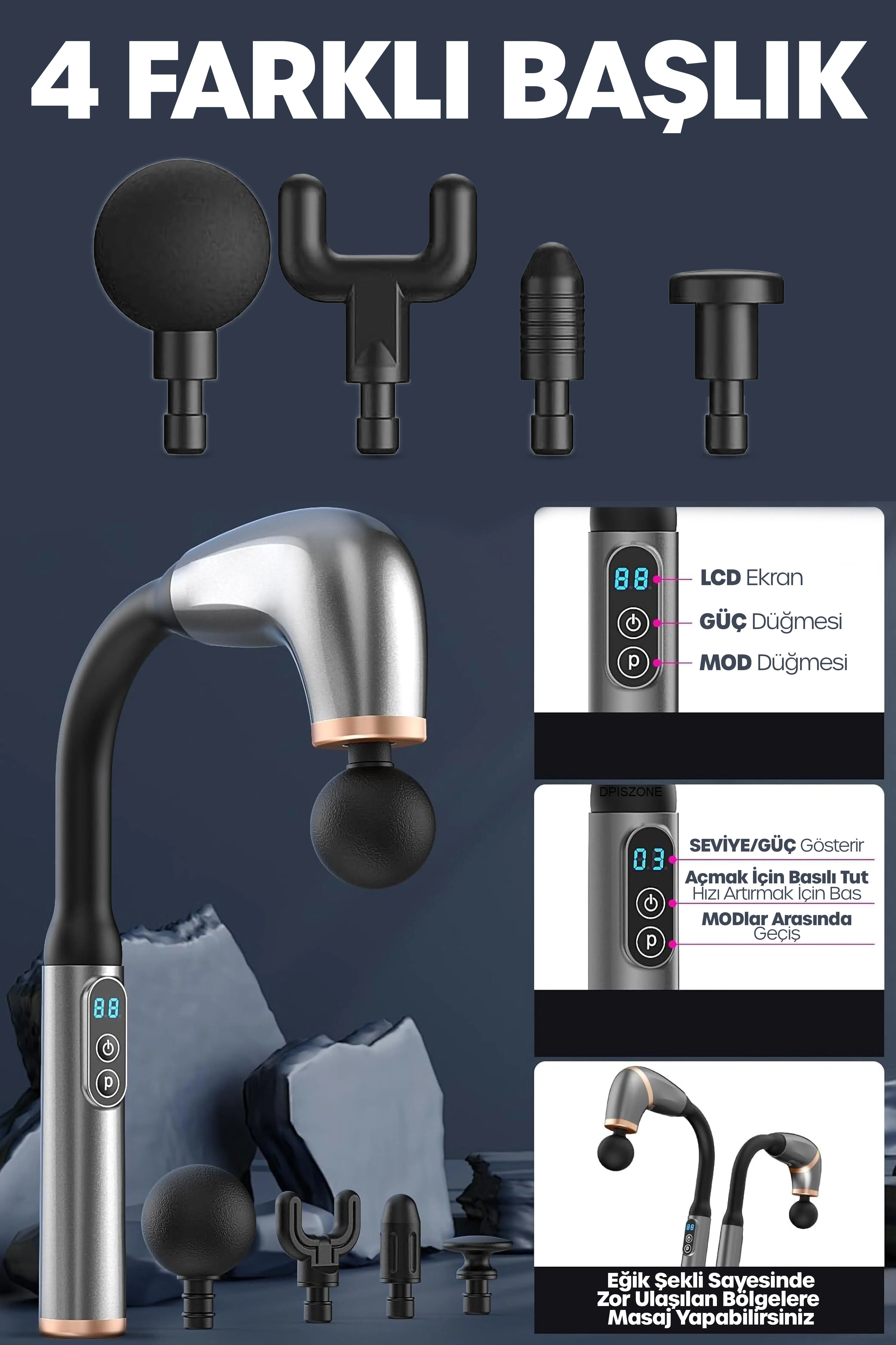 4 adet değiştirilebilir masaj başlığı ile tüm vücut bölgelerine uygun kullanım sağlar.