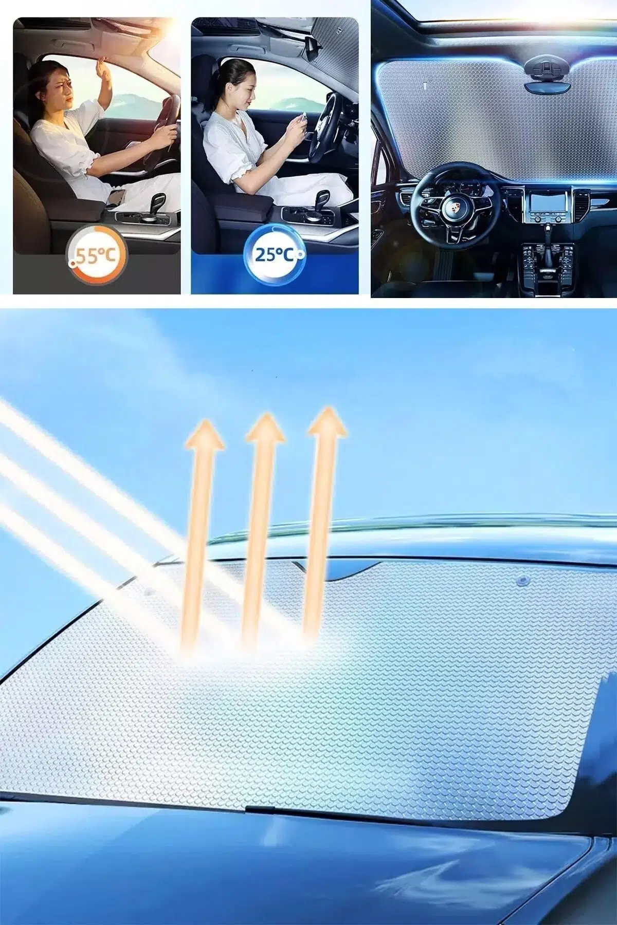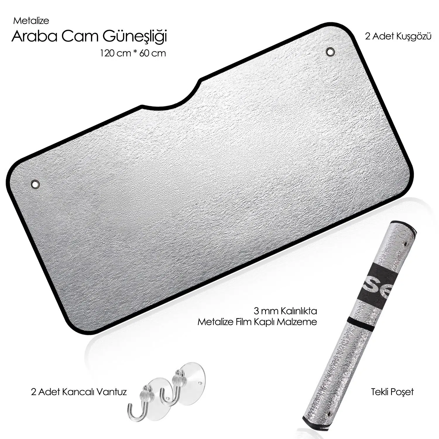 Aracınızı güneşin zararlı etkilerine karşı korumak için tasarlanan 130 x 60 cm oto ön cam güneşliği, sıcak havalarda araç içi ısınmayı azaltmaya yardımcı olur. Metalize yüzeyi sayesinde güneş ışınlarını yansıtarak torpido, direksiyon, koltuk ve ön konsol gibi iç yüzeylerin aşırı ısınmasını önlemeye destek olur. Yaz aylarında park halindeki araçlarda oluşan bunaltıcı sıcaklığı azaltarak daha konforlu bir kullanım sunar.