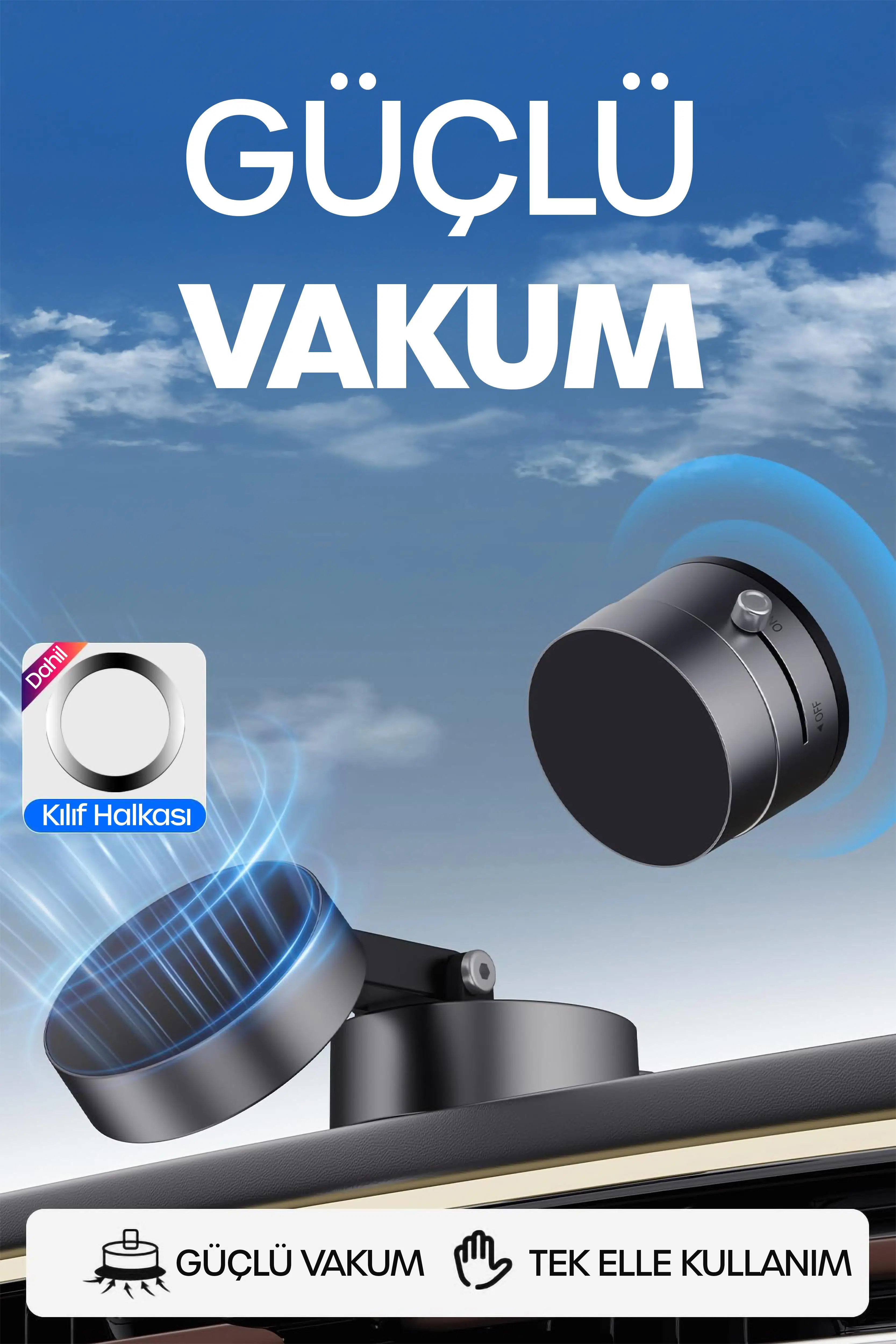 ✔ Güçlü vakum + manyetik tutuş