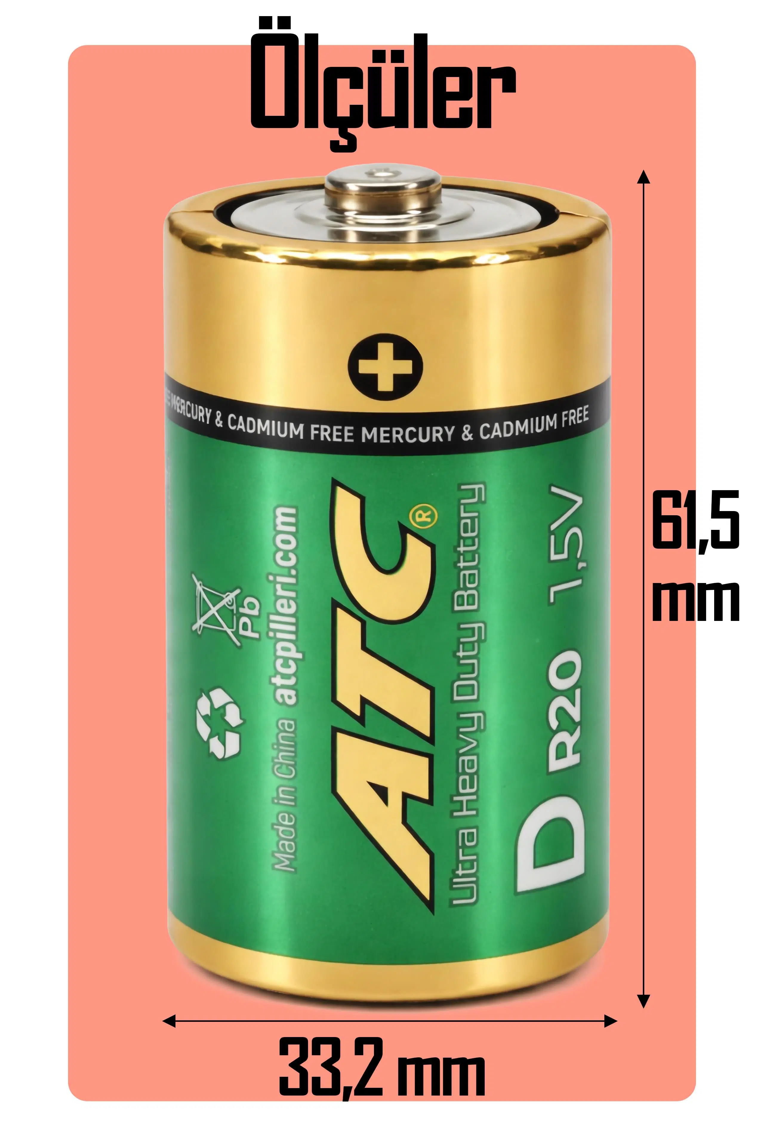 | Etiketler | ATC 12li Büyük Boy Pil R20 D-Size Pil D Boy Pil Oyuncak Pili Çinko Karbon Pil Zn-C 1.5 V |