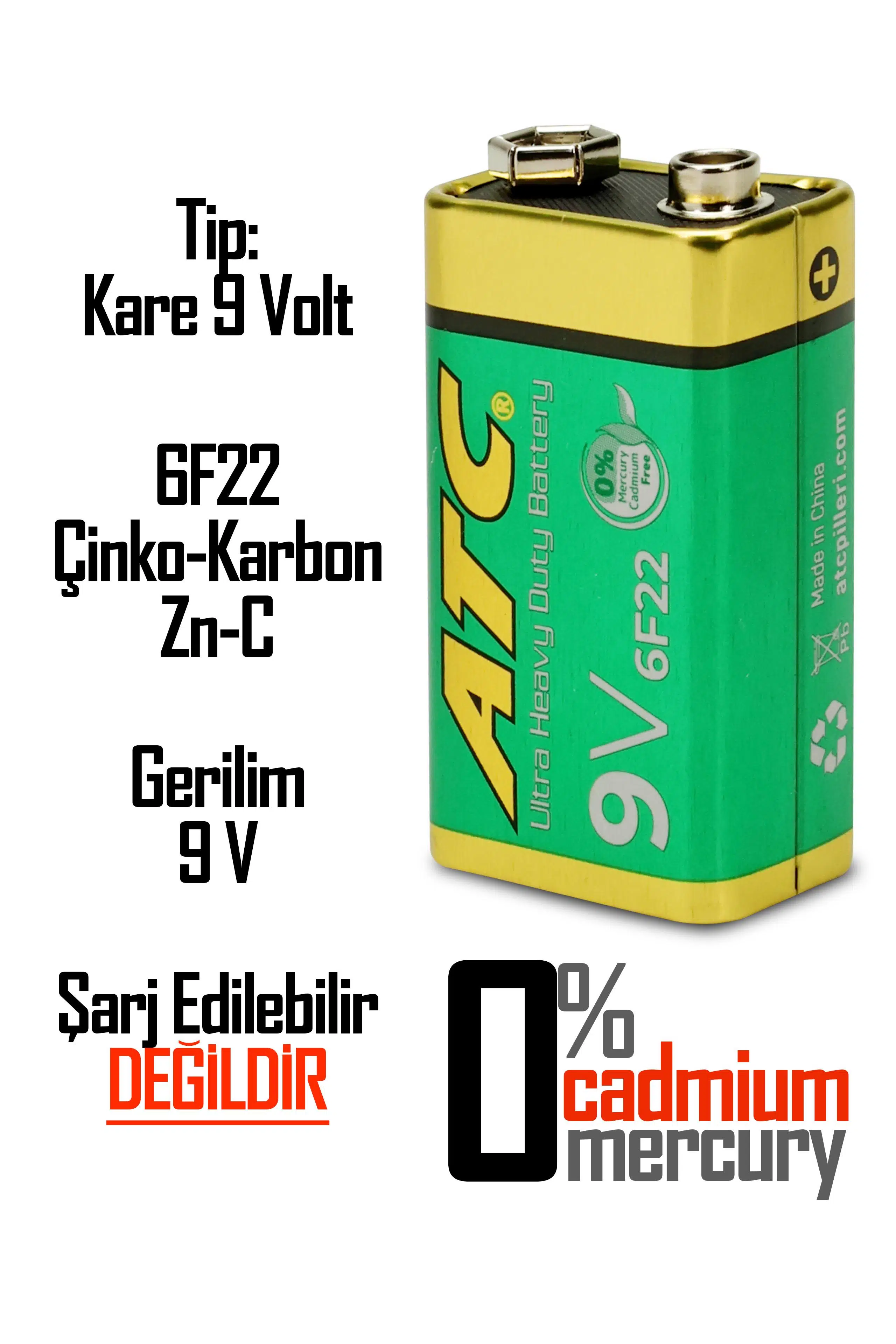 | Etiketler | ATC 4lü 9V Volt Kare Pil Heavy Duty Elektronik Pili Çinko Karbon Pil Zn-C 9 V |