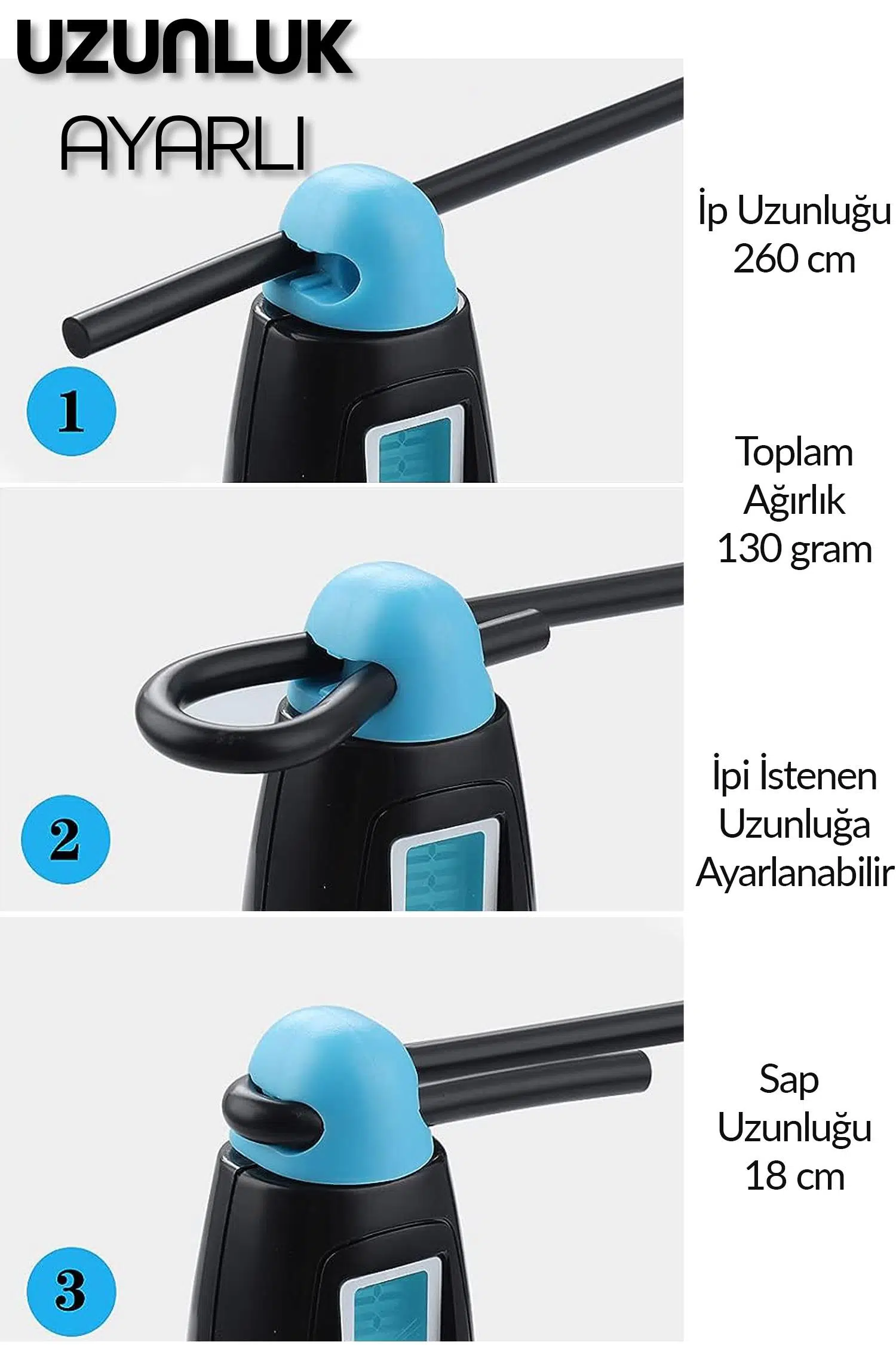 İp Uzunluğu: 260 cm (ayarlanabilir)