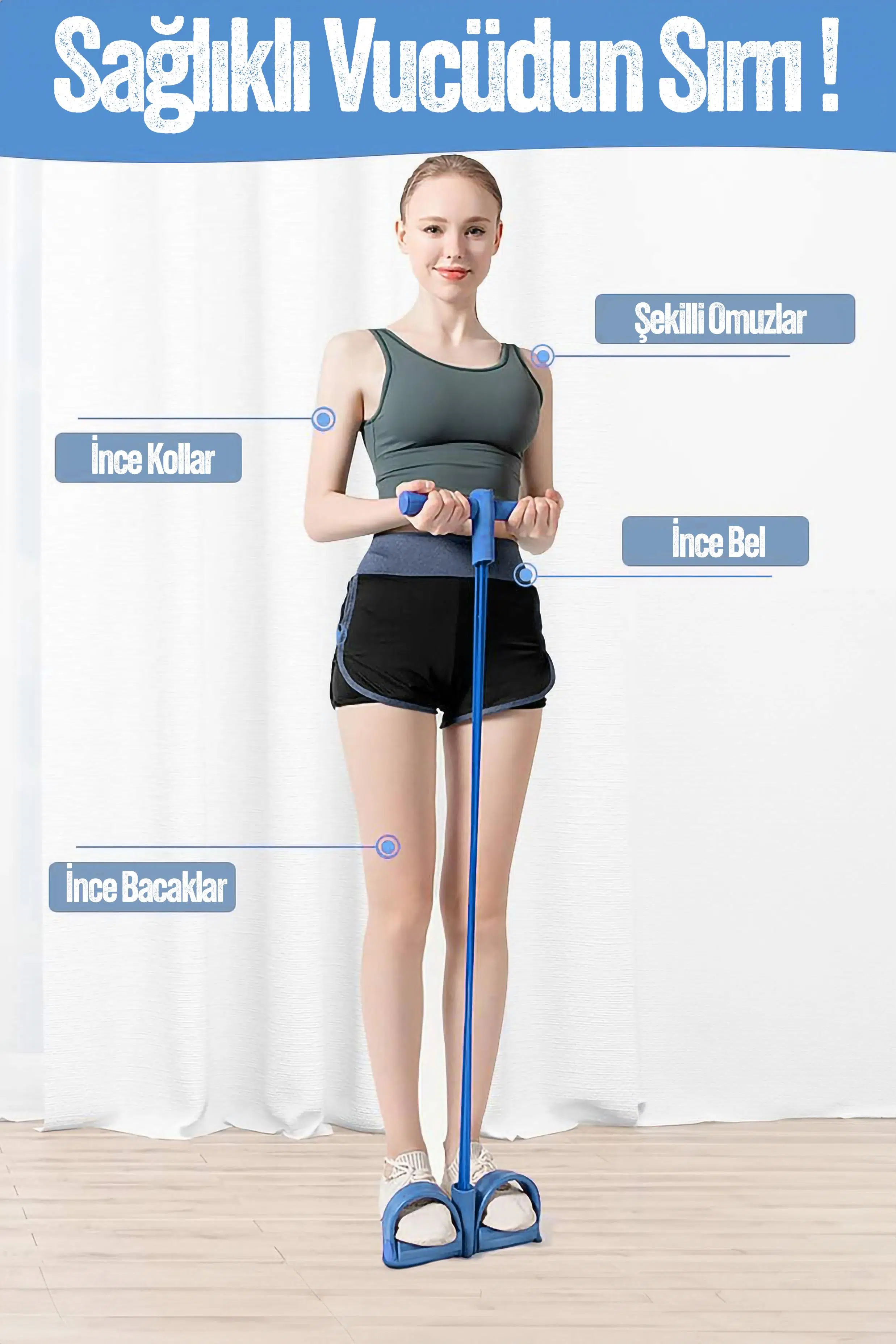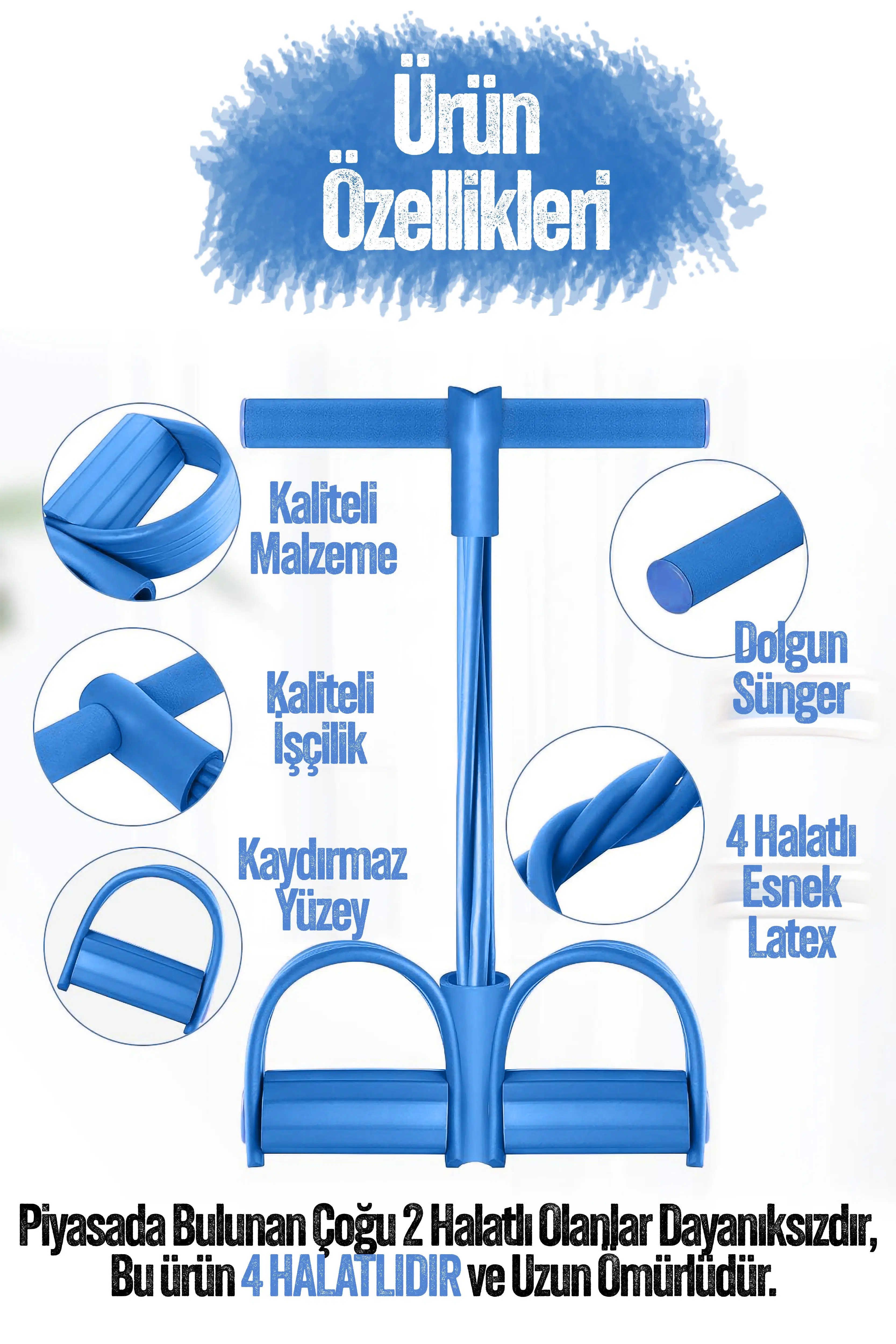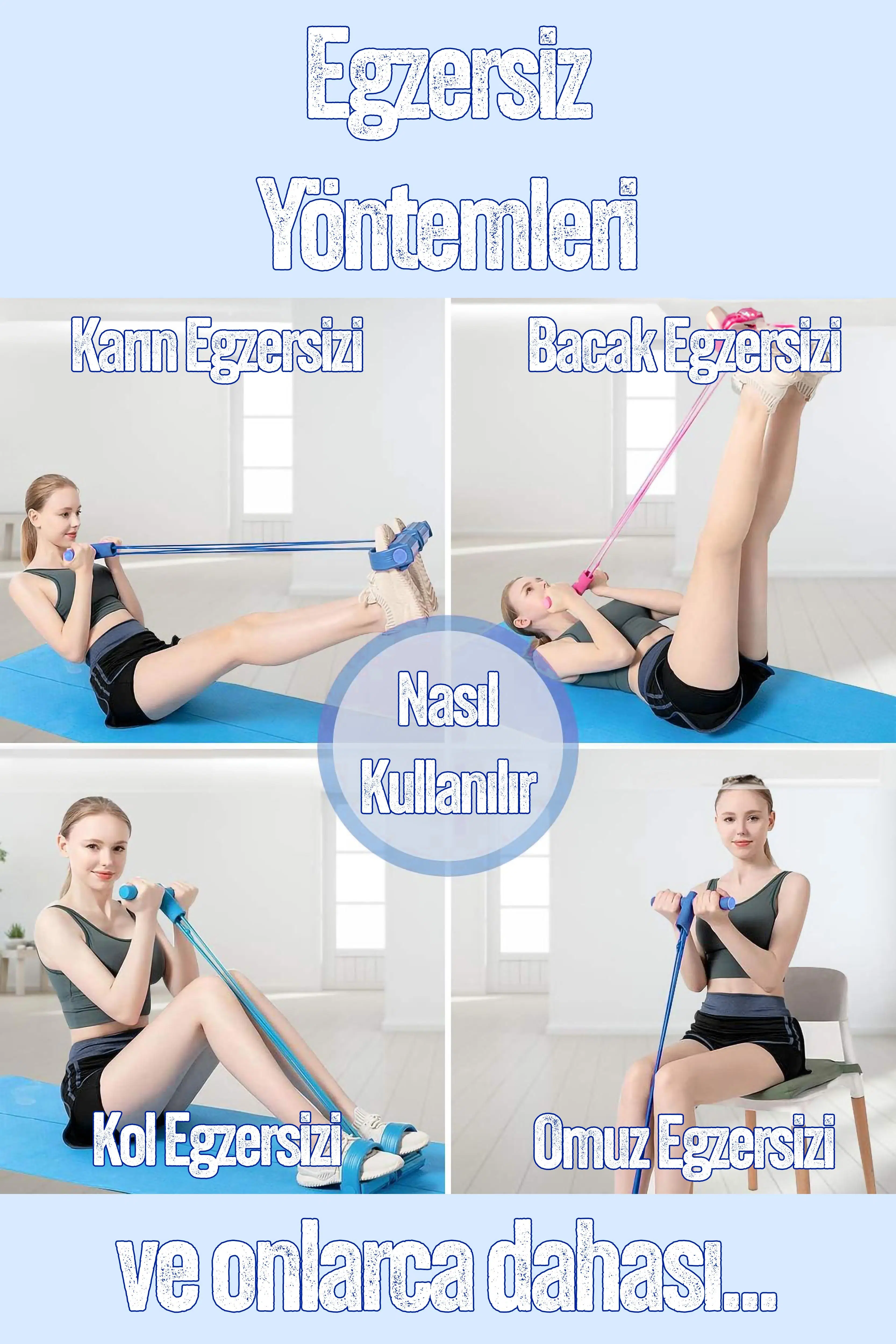 Bu 4 Halatlı Egzersiz Bandı, pratik tasarımı ve güçlü direnç seviyesi ile hem kadınların hem de erkeklerin kolayca kullanabileceği bir spor ekipmanıdır.