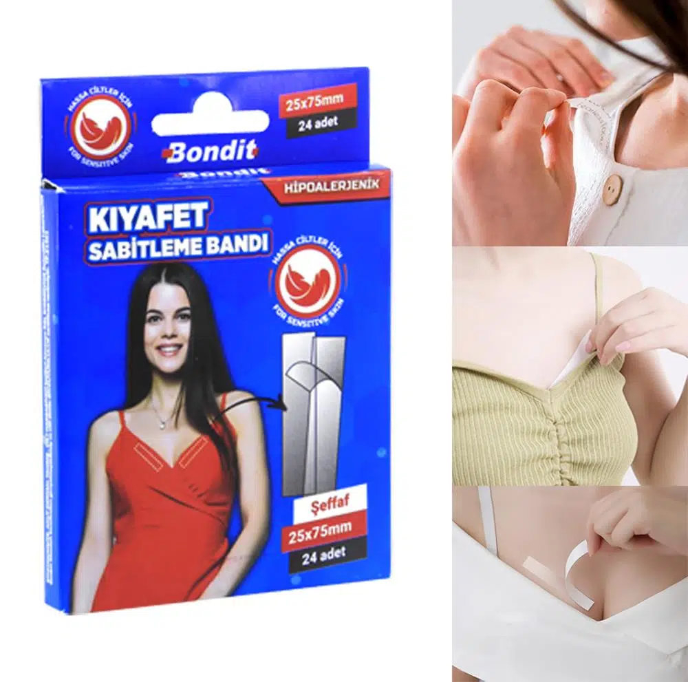| Etiketler | Bondit Dekolte Takı Kıyafet Elbise Kaydırmaz Sabitleme Bandı 24adet |