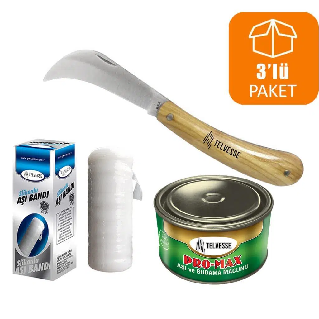 Burcu Aşı Bıçağı 19 cm + Aşı Macunu + Aşı Bandı (3'lü Aşılama Paketi)