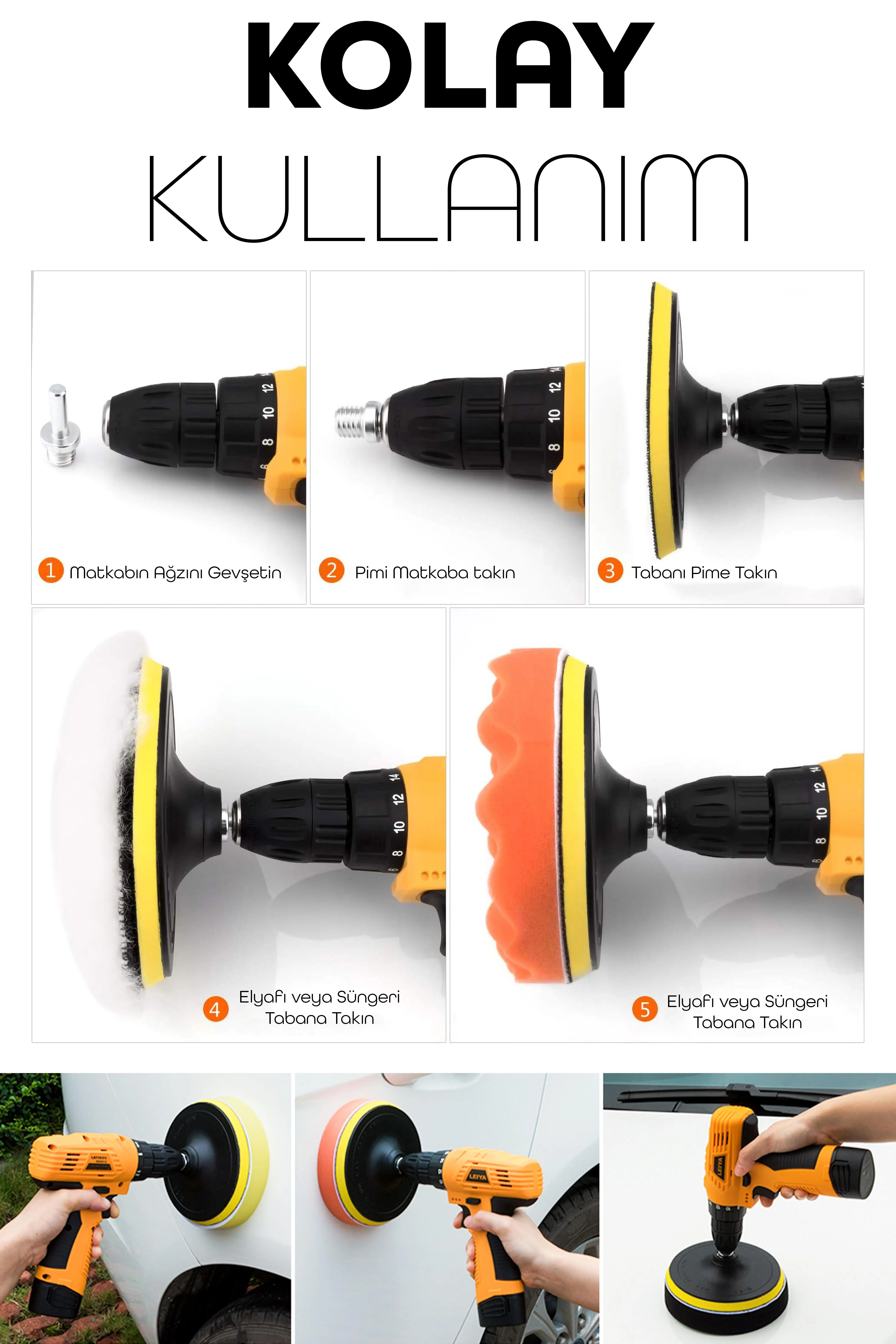 Aracınızda profesyonel kalitede pasta cila işlemi yapmak artık çok kolay! Bu 11 parçalık zengin içerikli set, her kullanıcı seviyesine uygun olacak şekilde tasarlandı. Matkapla uyumlu yapısıyla evde kendi başınıza zahmetsizce araç bakımınızı gerçekleştirebilirsiniz.