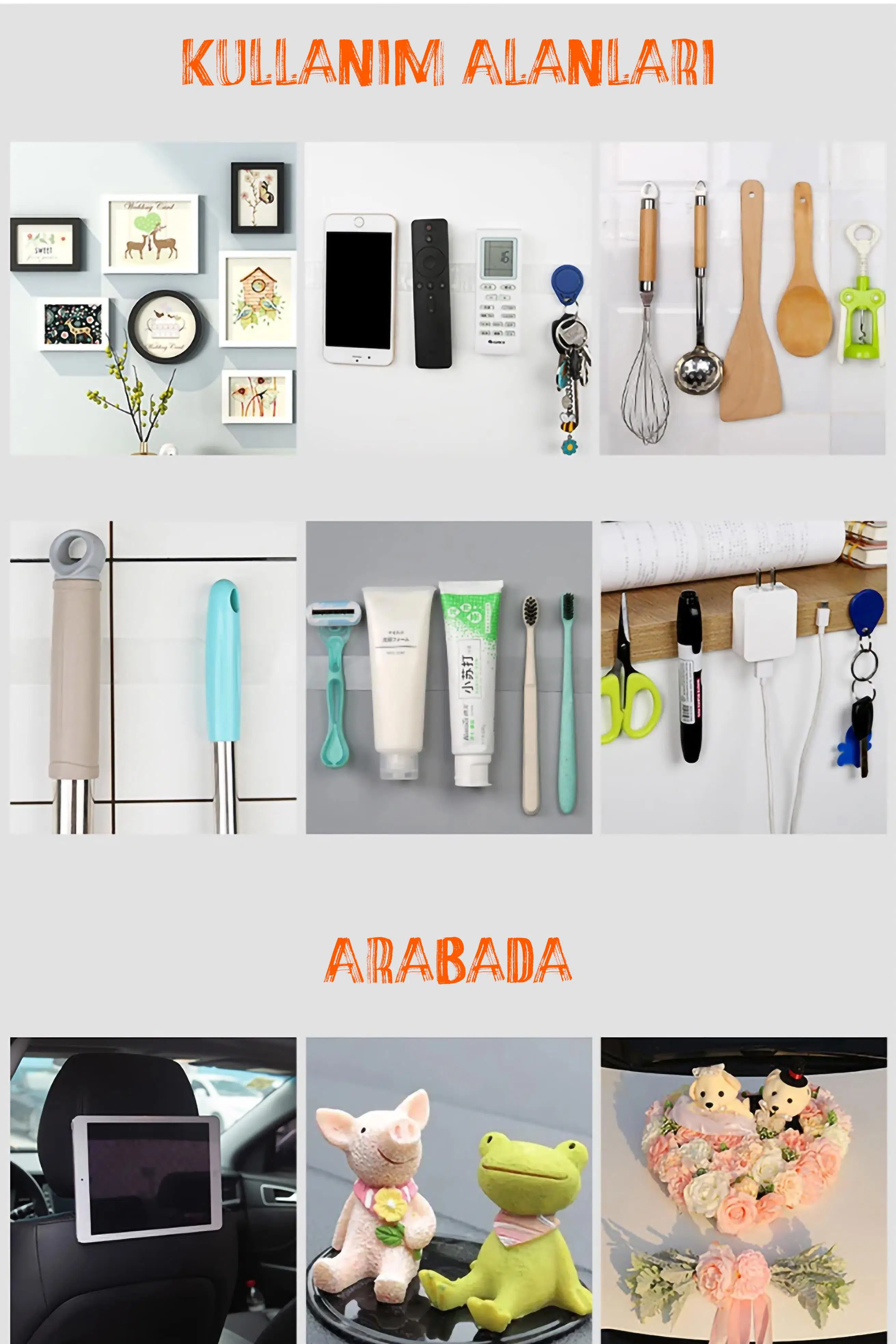 ÇOK İŞLEVLİ KULLANIM - 2 taraflı halı bandı, düz yüzeylerde 1 KG'ye (2,2 LBS) kadar olan öğeleri tutabilir, Cep telefonu, anahtar, kalemler, süslemeler, duvar askıları, mutfak aletleri, dolu boyama veya tablet gibi.