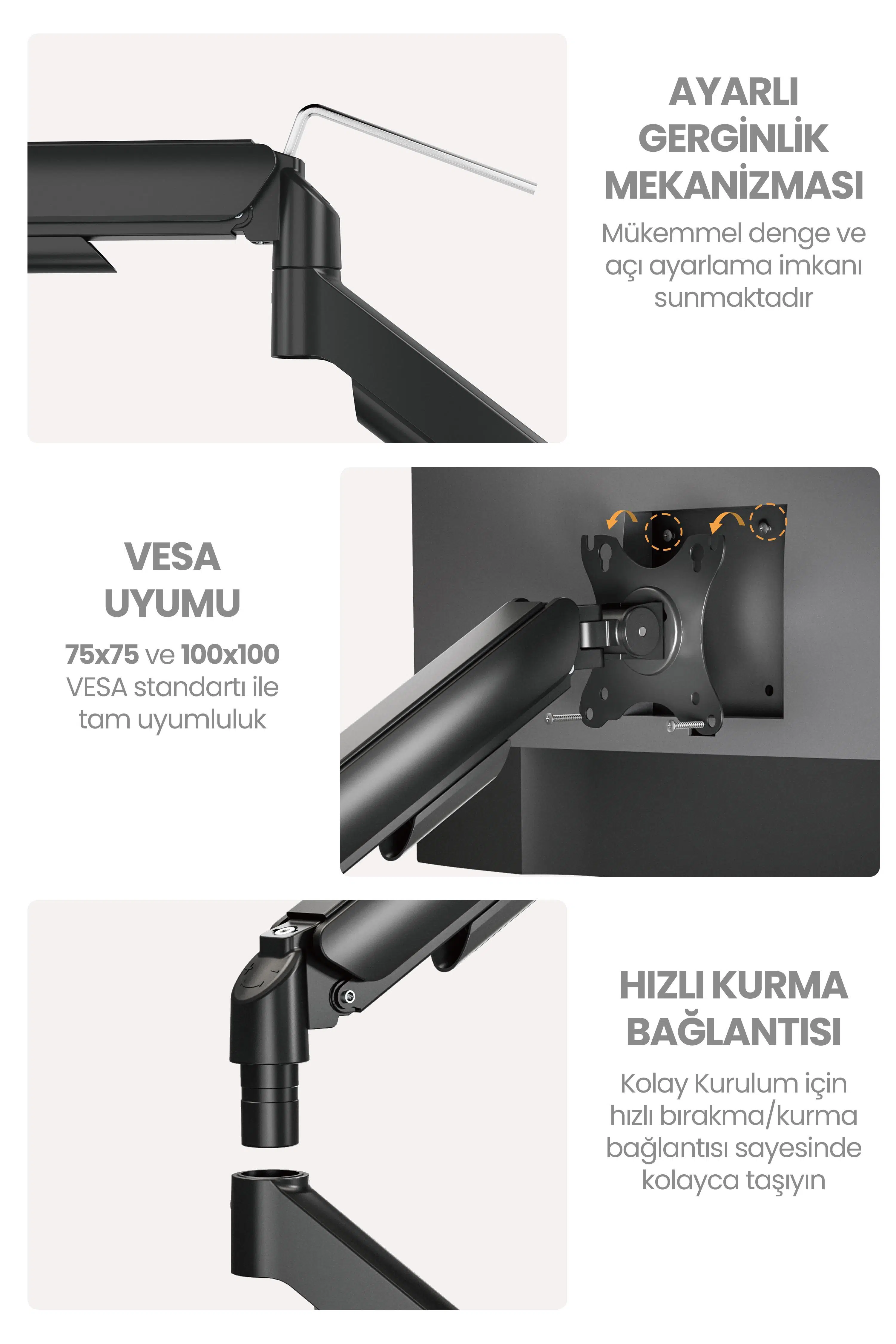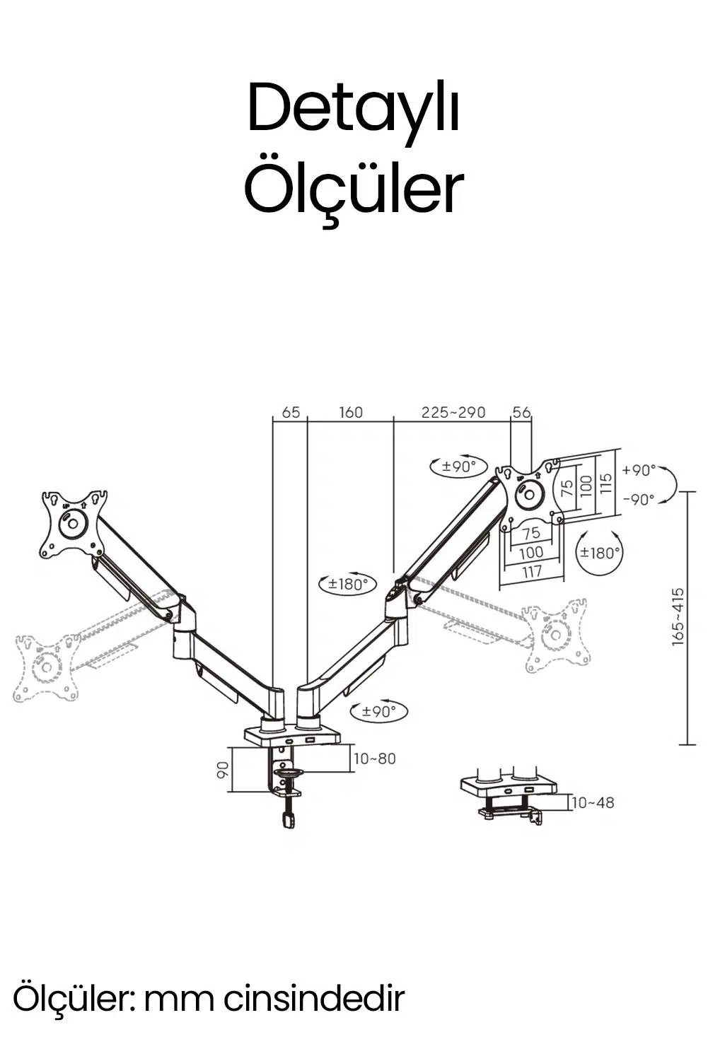 | Etiketler | Çiftli Monitör Kolu VESA Uyumlu Hareket Ayarlanabilir Monitör Standı 17-32" 9+9 KG Kapasite Tutucu |