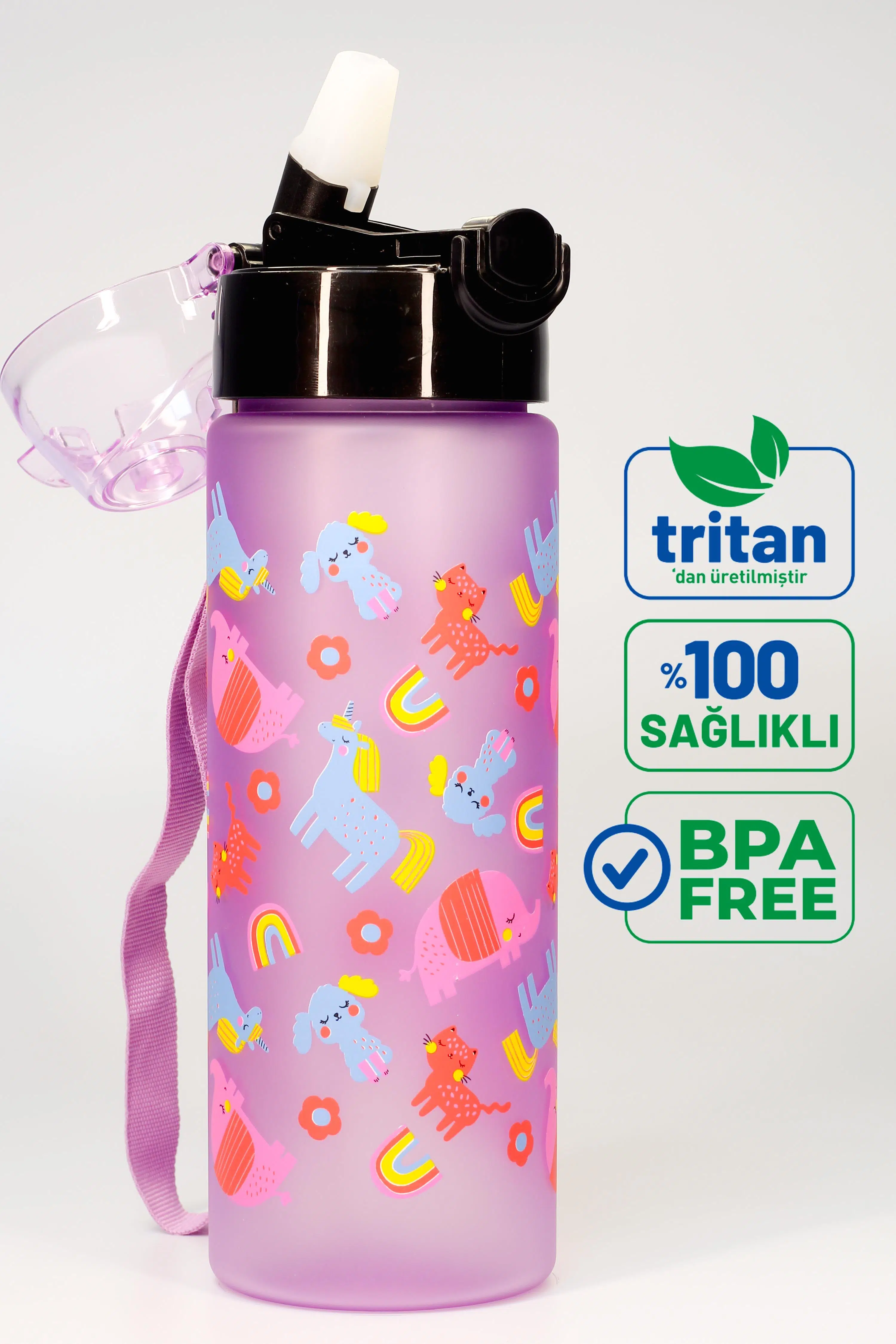 | Etiketler | Çocuk Su Matarası Tritan Pipetli Su Şişesi Unicorn Okul Suluğu Pipetli BPA'sız 550 mL Mor T0101 |