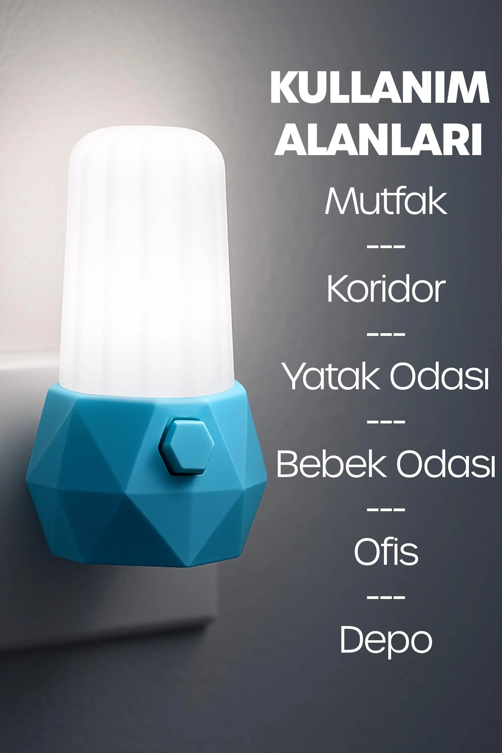 Evde geceleri güvenli ve konforlu bir ortam oluşturmak isteyen herkes için ideal bir gece lambasıdır. Modern priz tipi tasarımı sayesinde kabloya ihtiyaç duymaz, direkt olarak duvara takılarak anında kullanıma hazır hale gelir. Hem şık hem de işlevsel yapısıyla mutfak, koridor, yatak odası ve özellikle bebek odaları için mükemmel bir çözüm sunar.