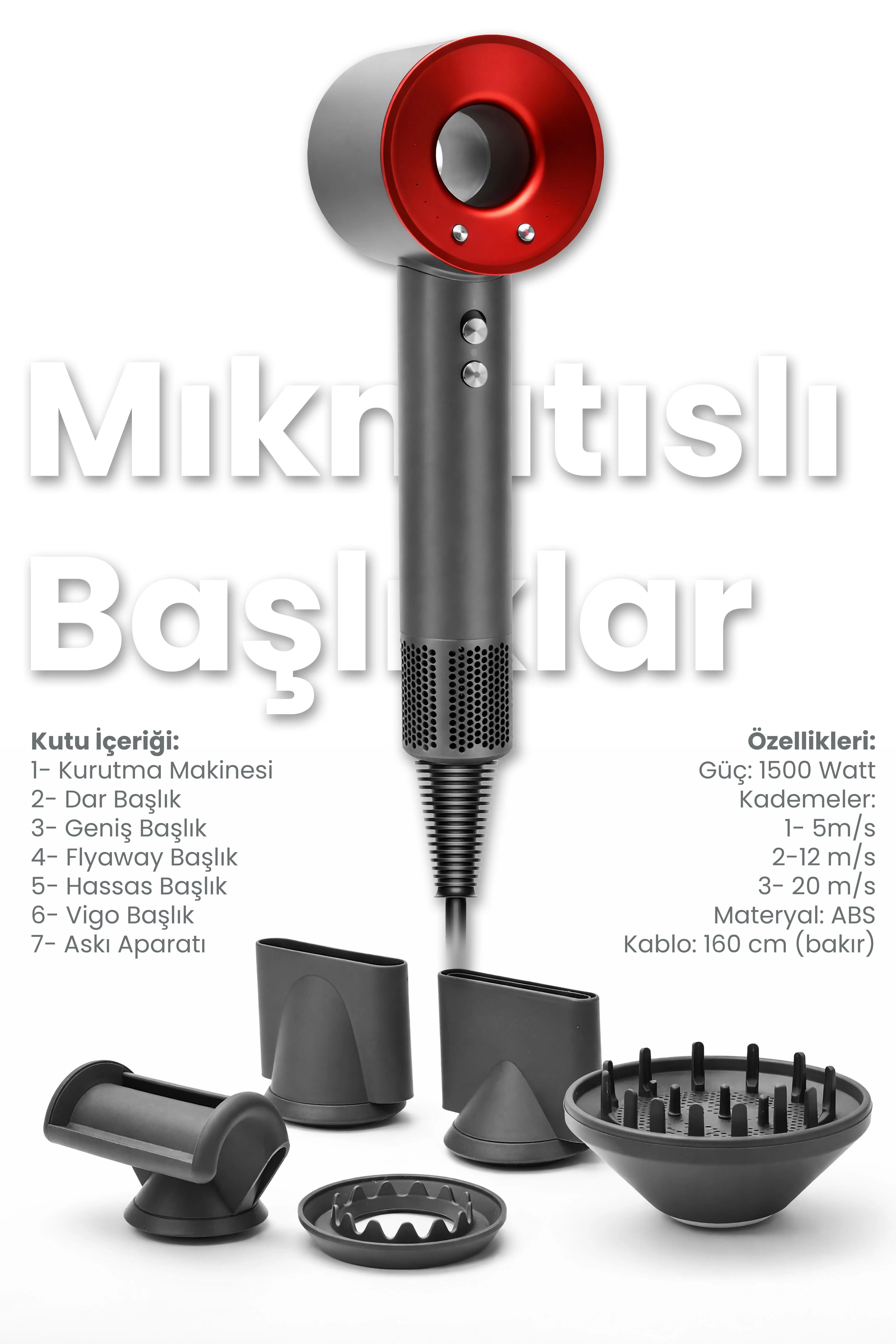 Yüksek hızlı dijital motor teknolojisi ile geliştirilen bu saç kurutma ve şekillendirme seti, güçlü hava akışı sayesinde saçları kısa sürede kuruturken saç yapısını korumaya yardımcı olur. Farklı başlık seçenekleri sayesinde düzleştirme, hacim verme, şekillendirme ve hassas kurutma işlemlerini tek cihazla yapabilirsiniz.