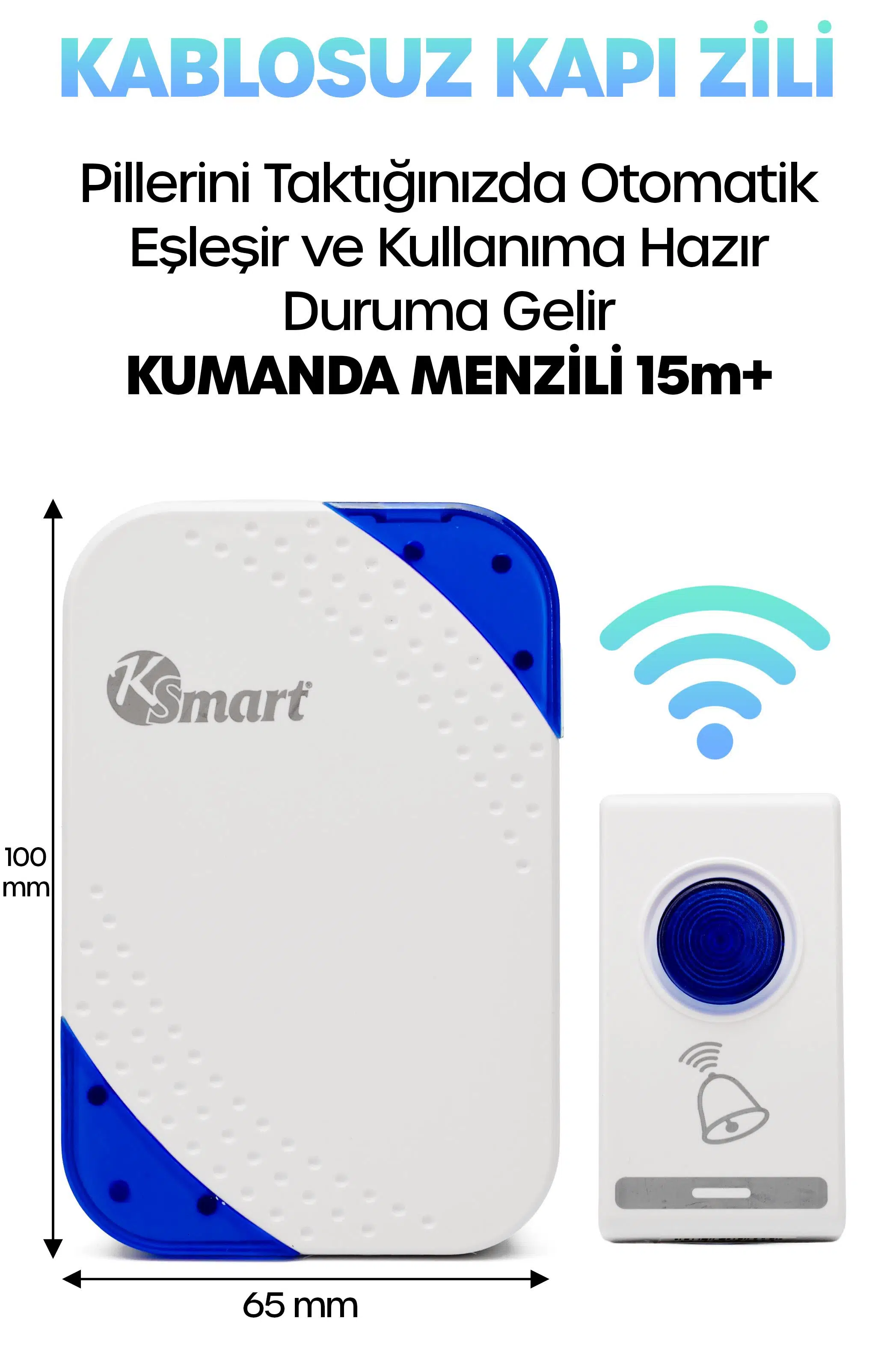 Kablosuz, tak-çalıştır sistem: Piller takıldığında verici–alıcı otomatik eşleşir.
