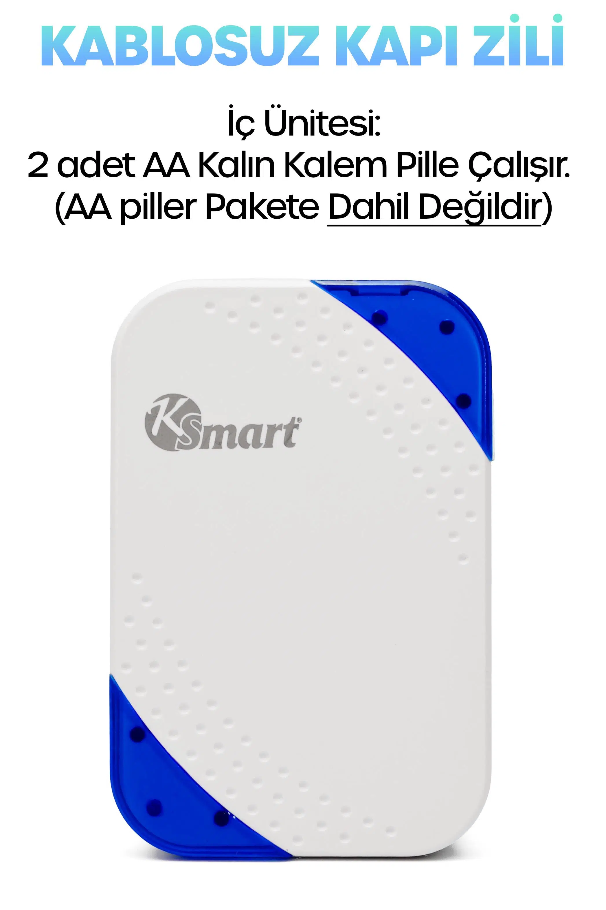 İç ünite (alıcı): 2 adet AA kalem pille çalışır. (AA piller pakete dahil değildir.)