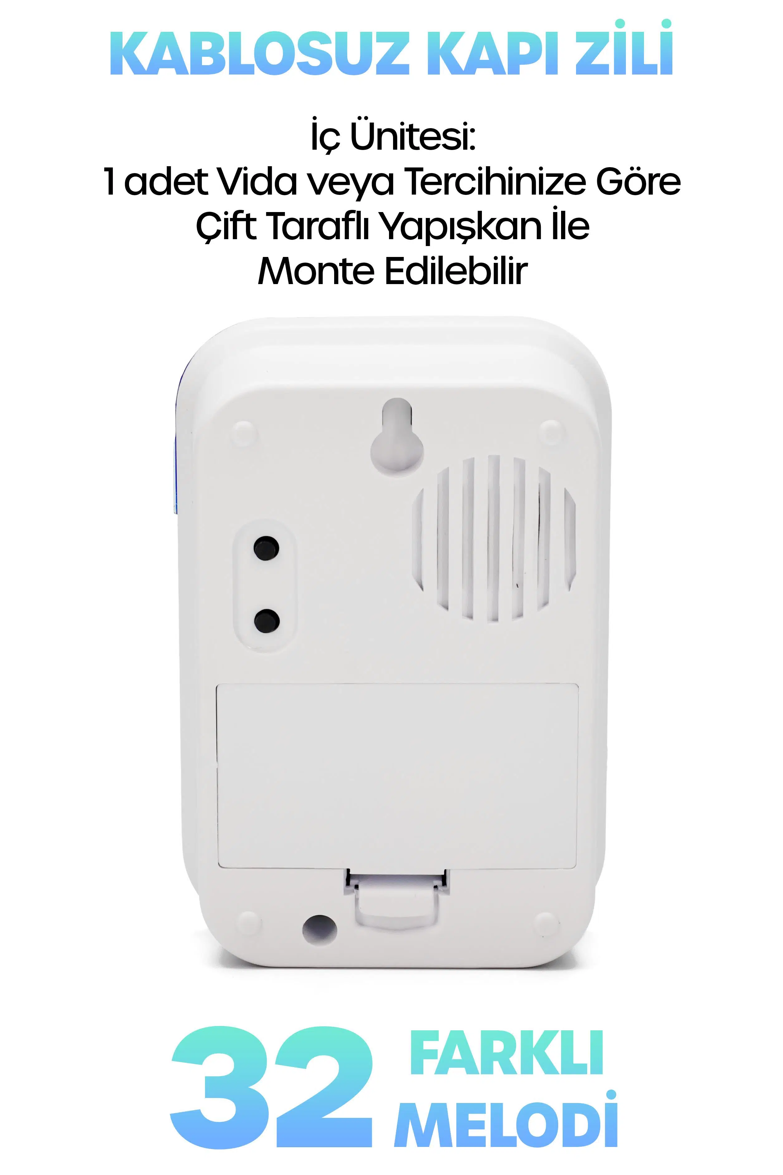 | Etiketler | Kablosuz Uzaktan Kumanda Kapı Zili Işıklı Uzun Menzilli Pilli 32 Farklı Melodili Mavi-Beyaz 9402 |