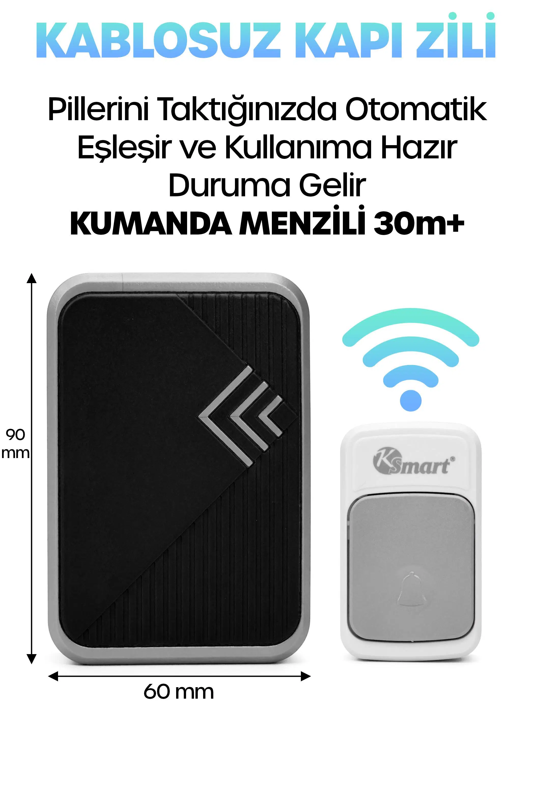 Kablosuz, tak-çalıştır sistem: Piller takıldığında verici–alıcı otomatik eşleşir.