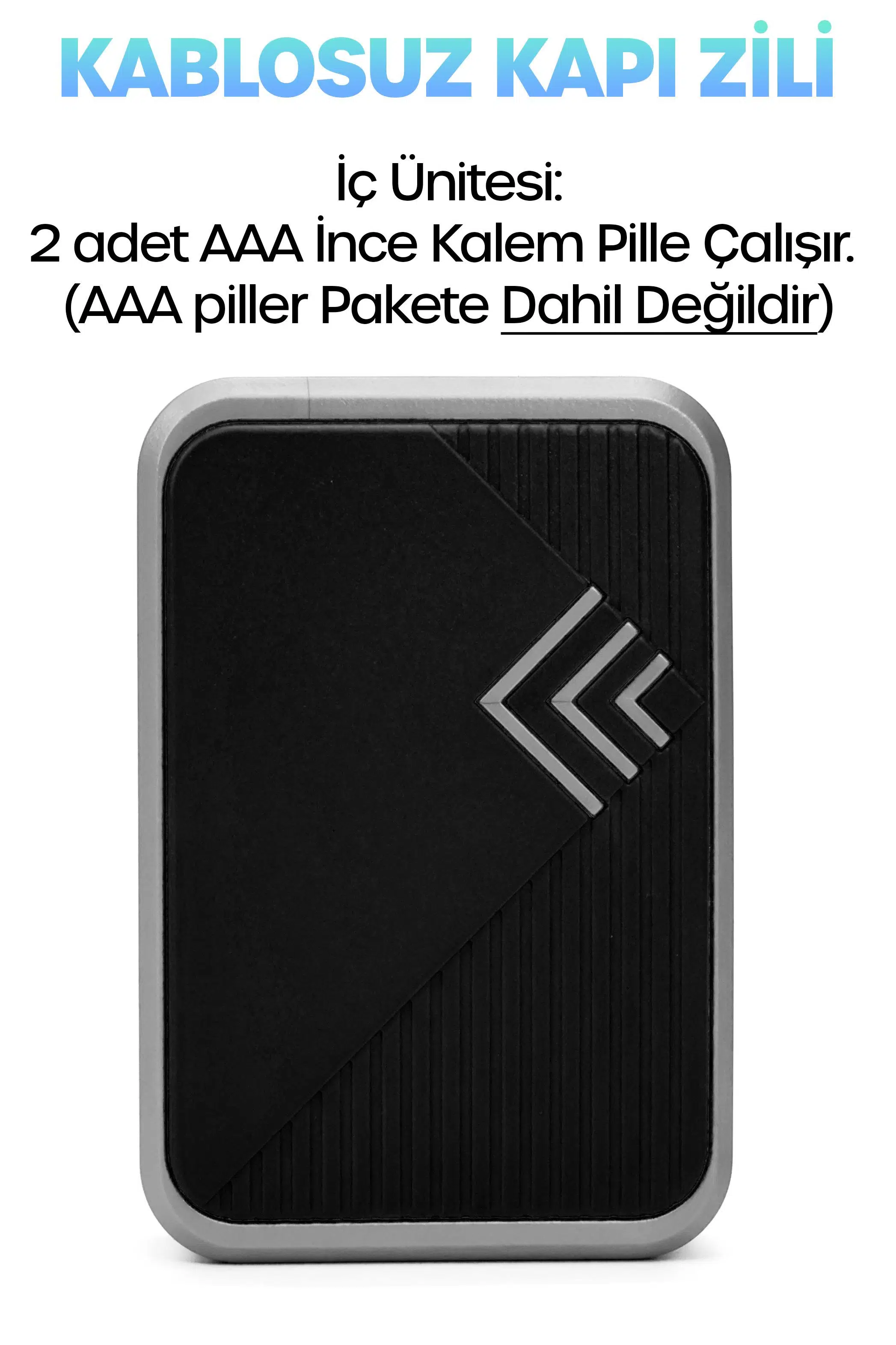 İç ünite (alıcı): 2 adet AAA kalem pille çalışır. (AAA piller pakete dahil değildir.)