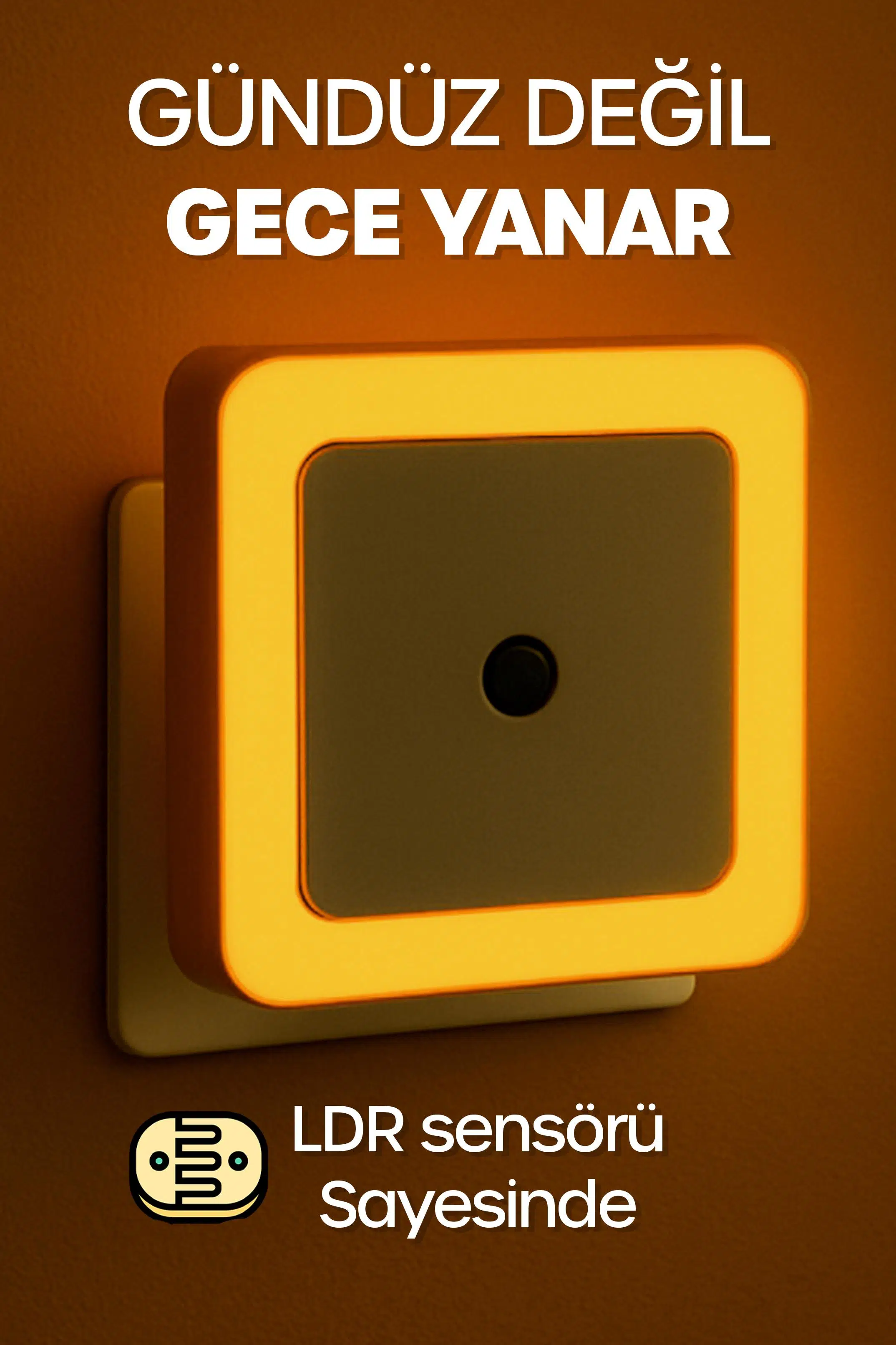 Ev içinde karanlık alanlarda güvenli, ekonomik ve otomatik bir aydınlatma istiyorsan bu gece lambası tam sana göre. Prize takıldığı anda devreye giren akıllı LDR sensörü sayesinde gündüz sönük, karanlıkta otomatik olarak yanar. Her yaşa ve her odaya uygun pratik bir çözüm sunar.