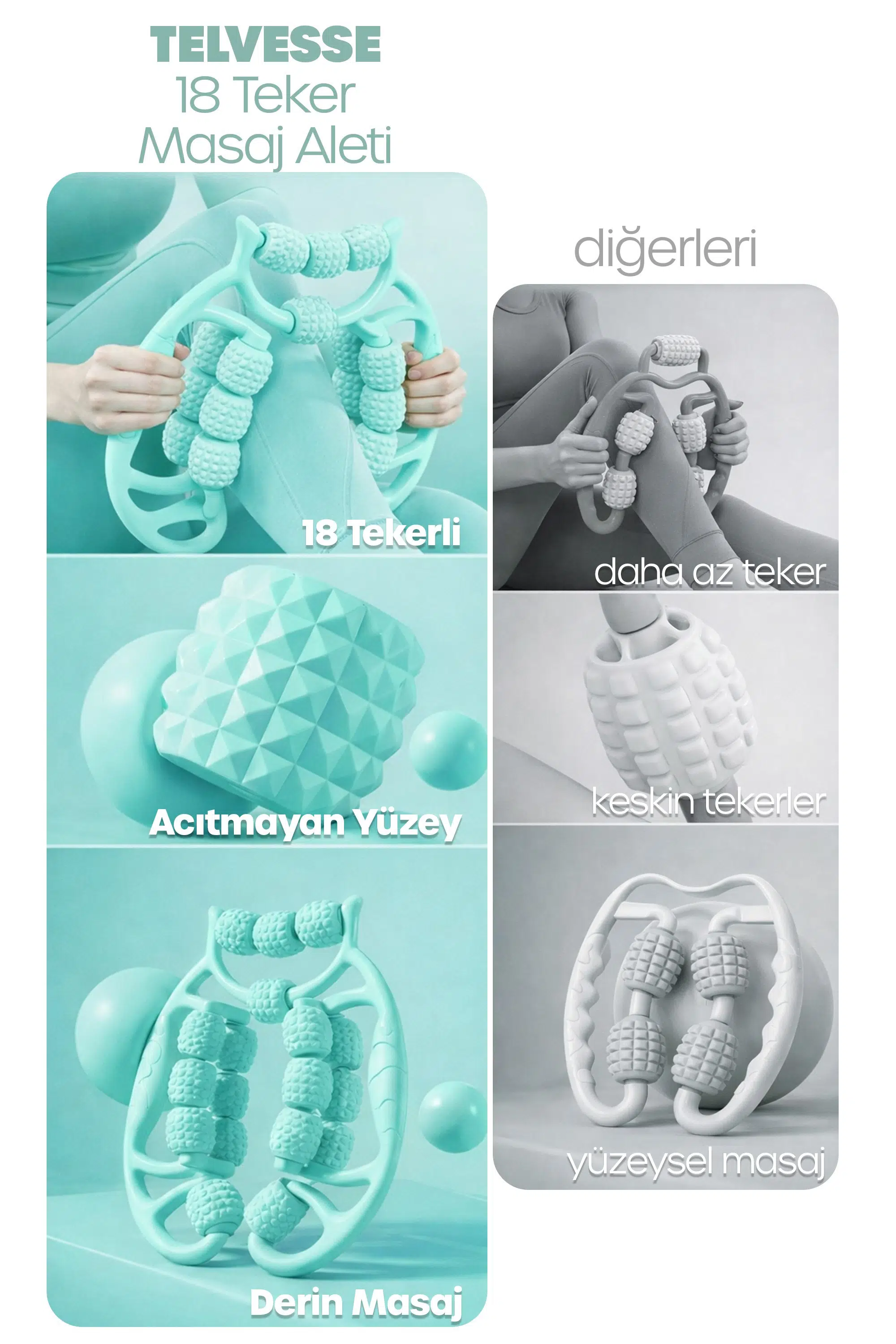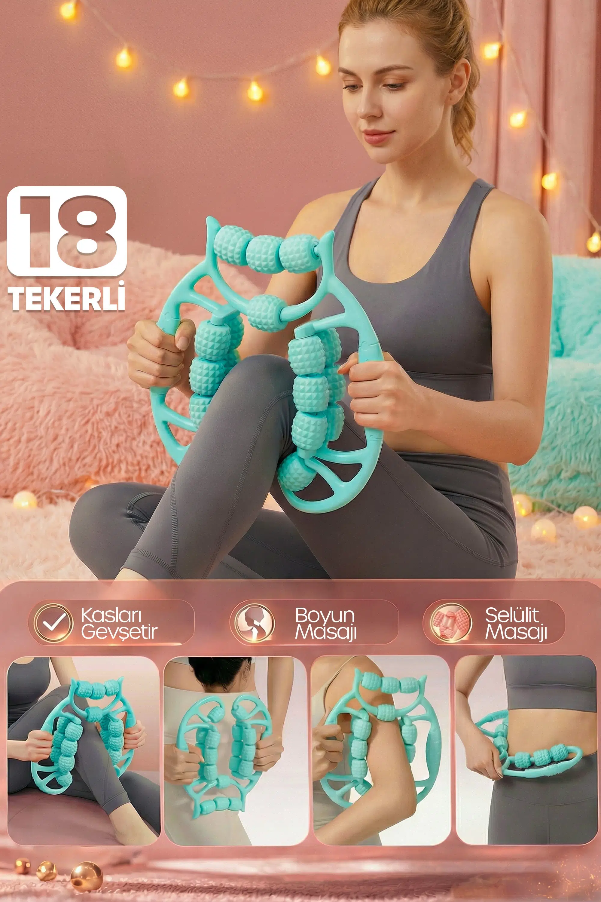 | Etiketler | Kas Gevşetici Masaj Aleti 18 Tekerlekli Lenf Drenaj Rulosu Bacak Kol Selülit Önleyici Turkuaz |