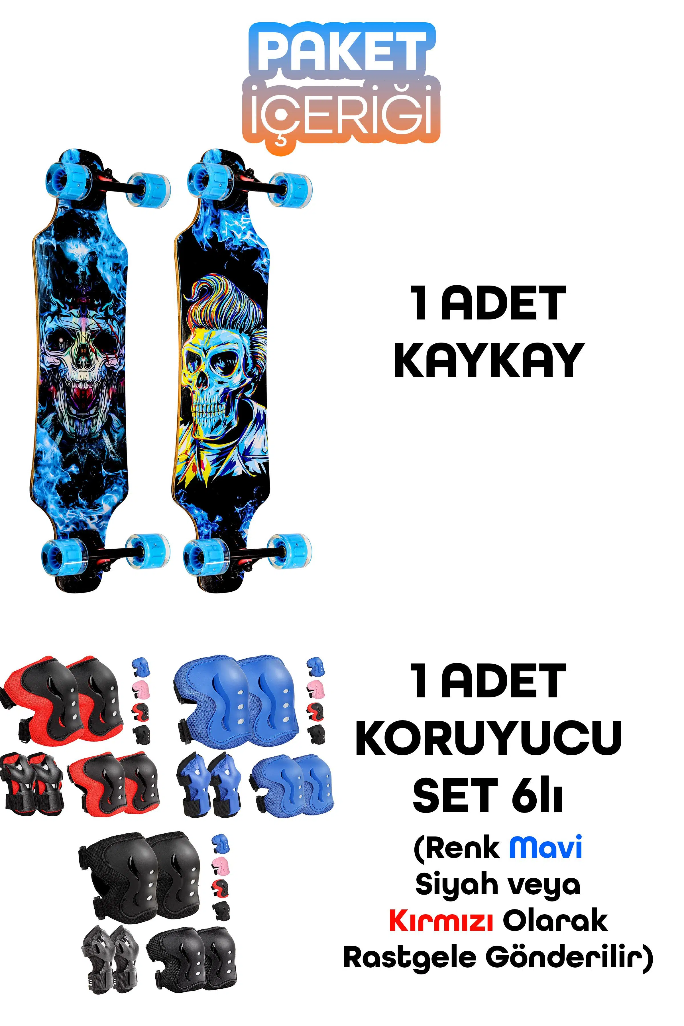 | Etiketler | Kaykay + Koruyucu Set Silikon Teker Diz Dirsek El Koruma Seti Skeleton Model Zımparalı Skateboard |